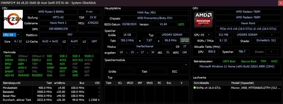 | Acer Swift Edge SFE16 Ryzen 7 7840U (AV Pro V60) | |