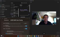 De QHD-webcam van de Acer Swift Go leverde zeer indrukwekkende resultaten. De beeldkwaliteit kan zelfs nog iets verbeterd worden dankzij Intel's NPU en Windows Studio Effects. Dit belast echter de iGPU en zoals u zou verwachten, laten de ventilatoren van de Acer Swift Go zich snel en luid voelen.