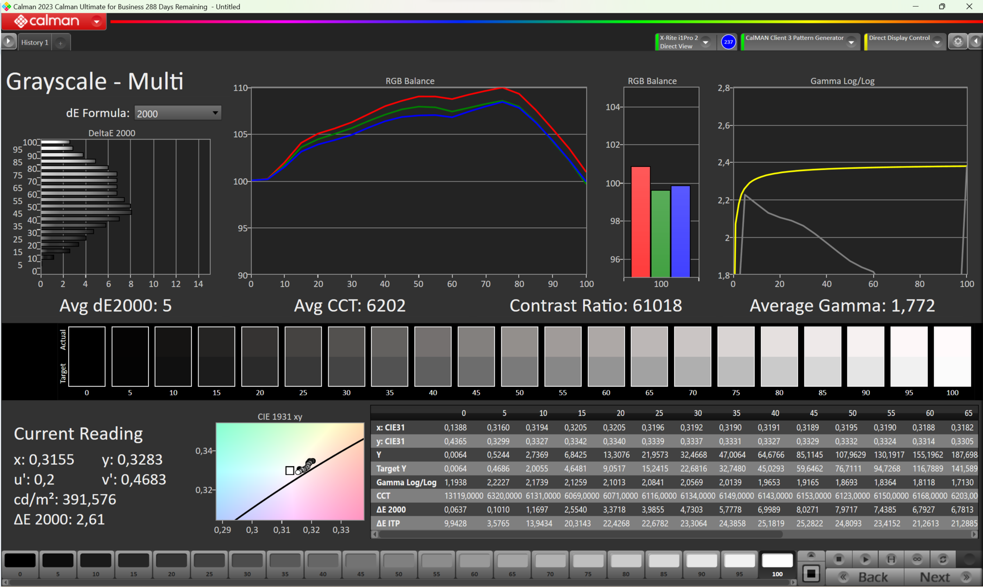 ΔE Greyscale Calman: 2.61 | ∀{0.09-98 Ø5}
