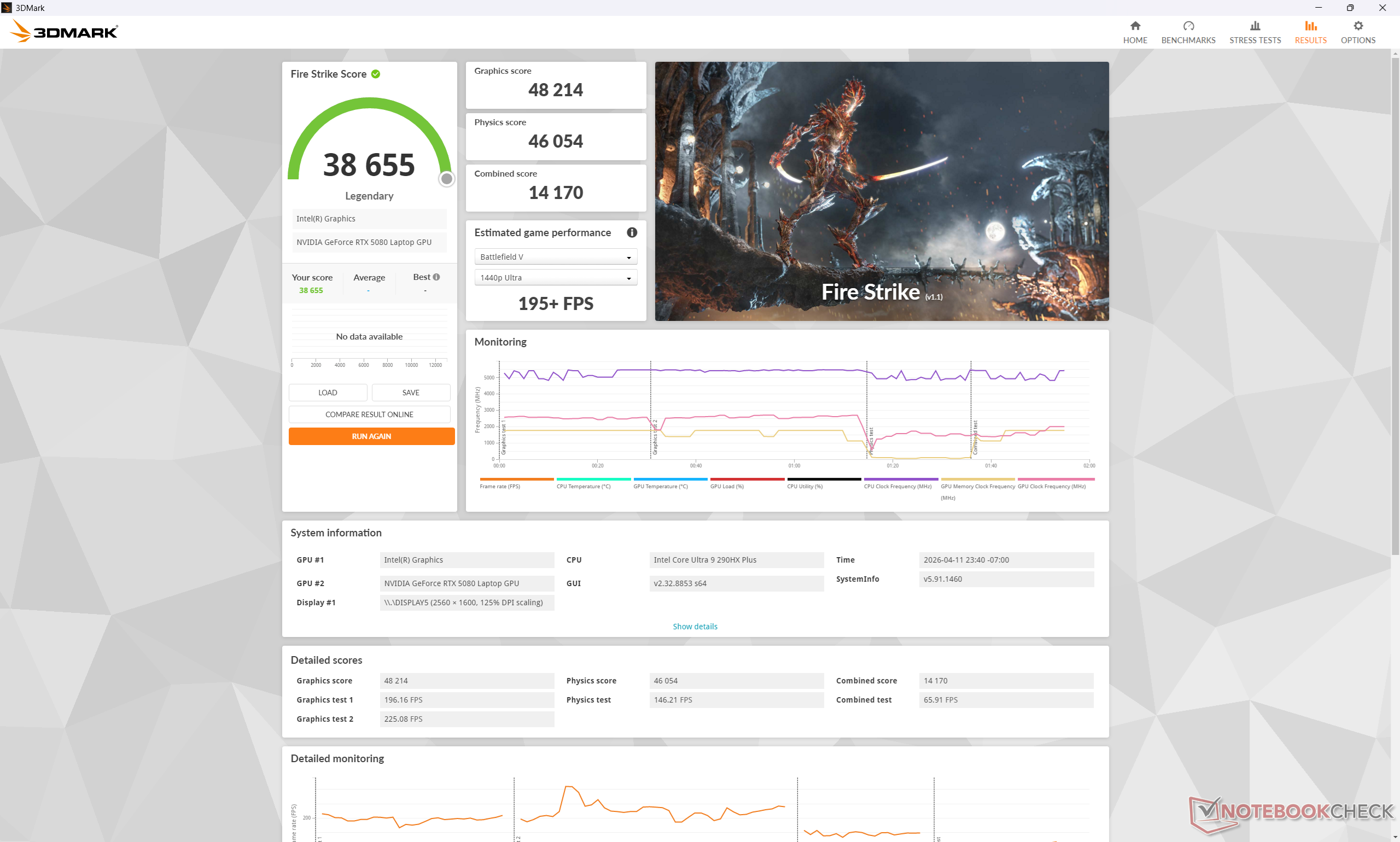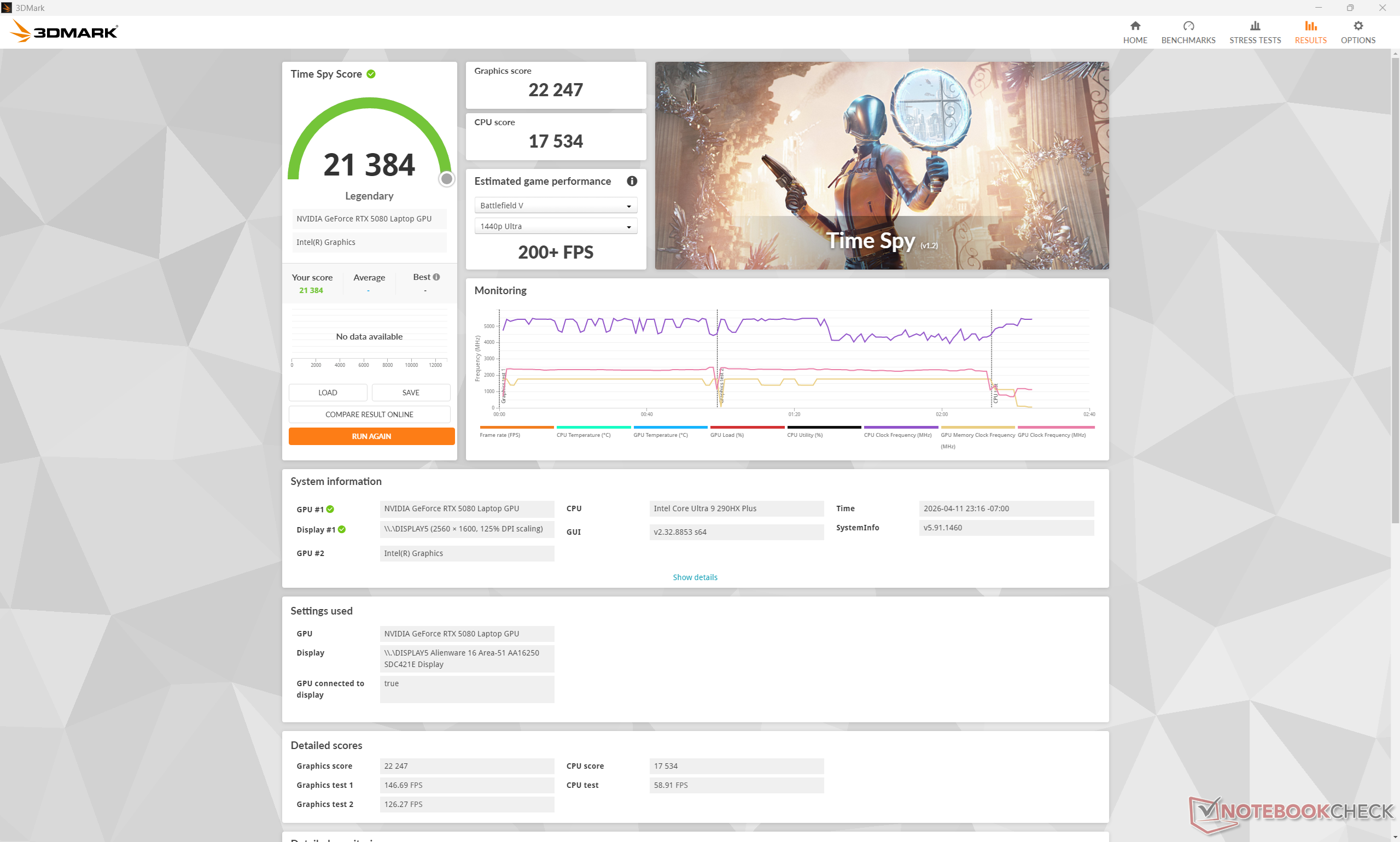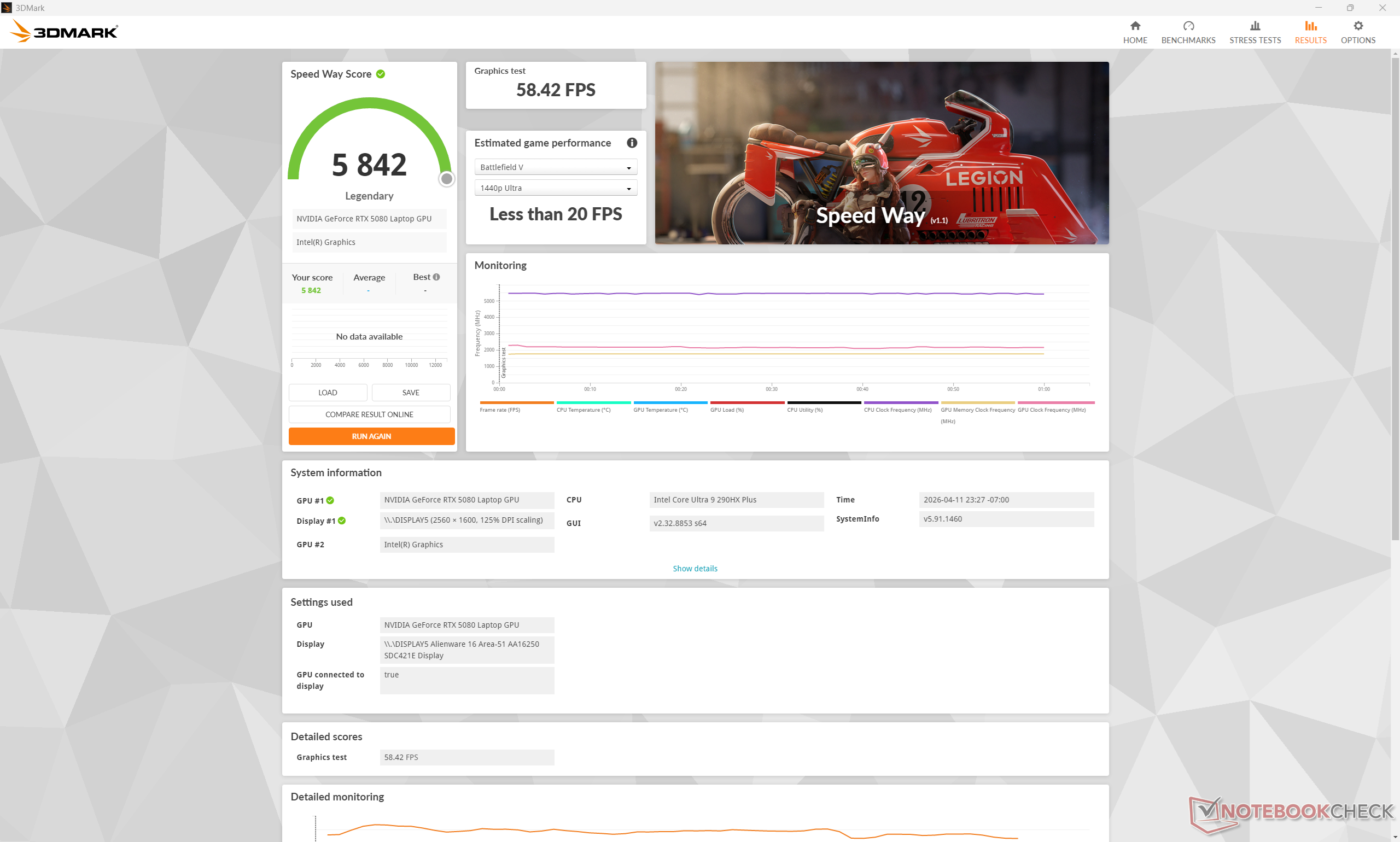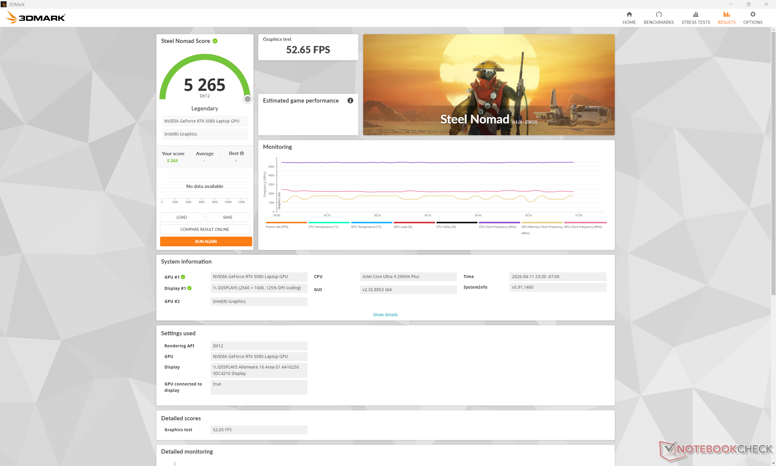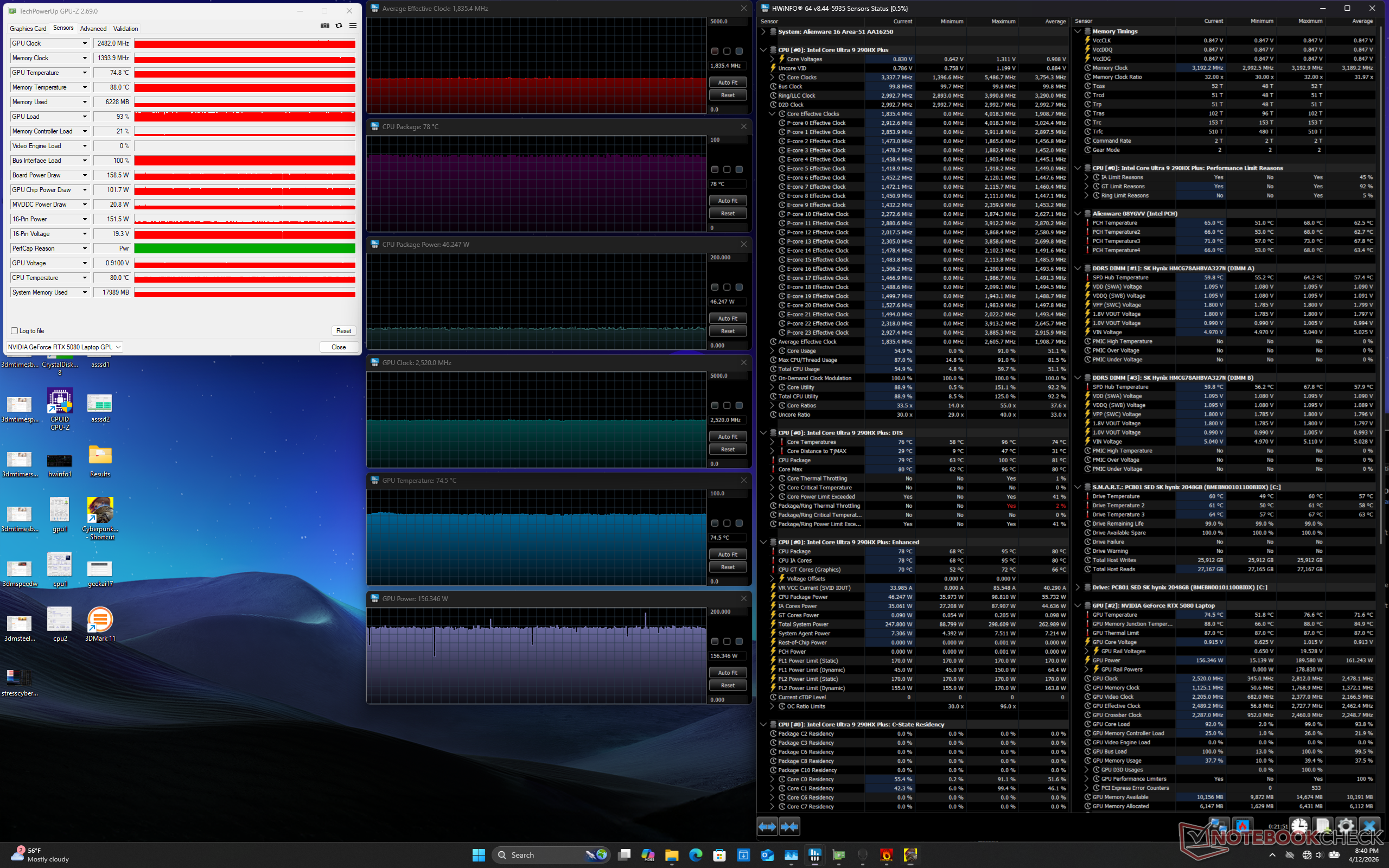 De GPU-temperatuur blijft ongeveer gelijk aan die van het 2025 model wanneer Cyberpunk 2077 wordt uitgevoerd. De CPU-temperatuur zou echter een paar graden warmer worden, tot 82 C.