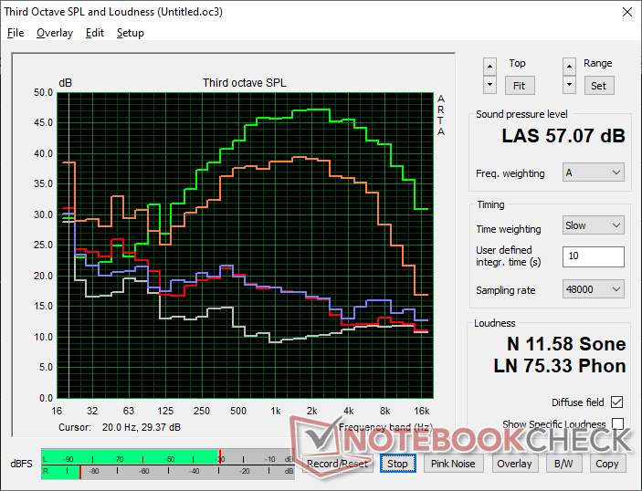 (+) | het totale geluid is lineair (4.6% verschil met de mediaan)