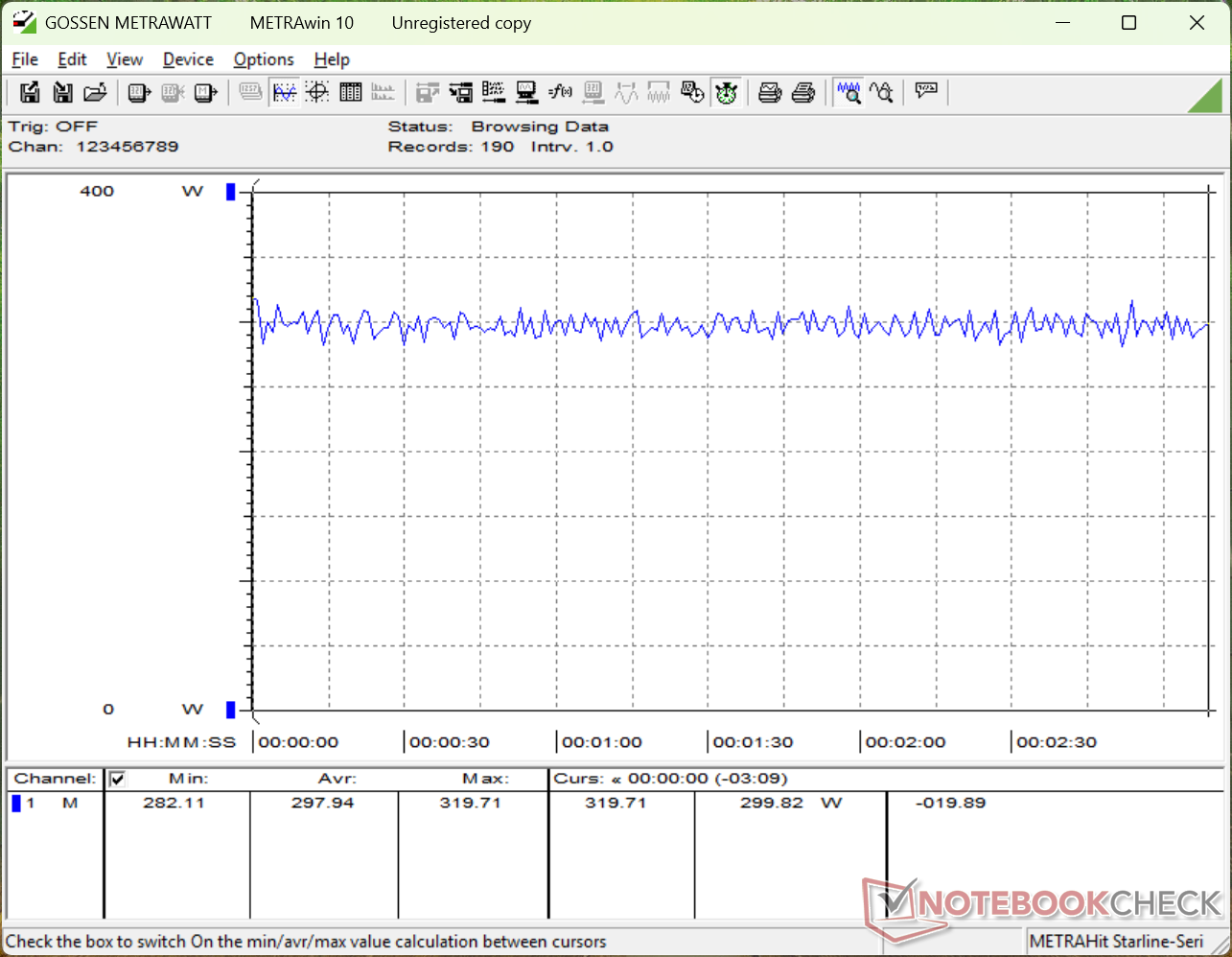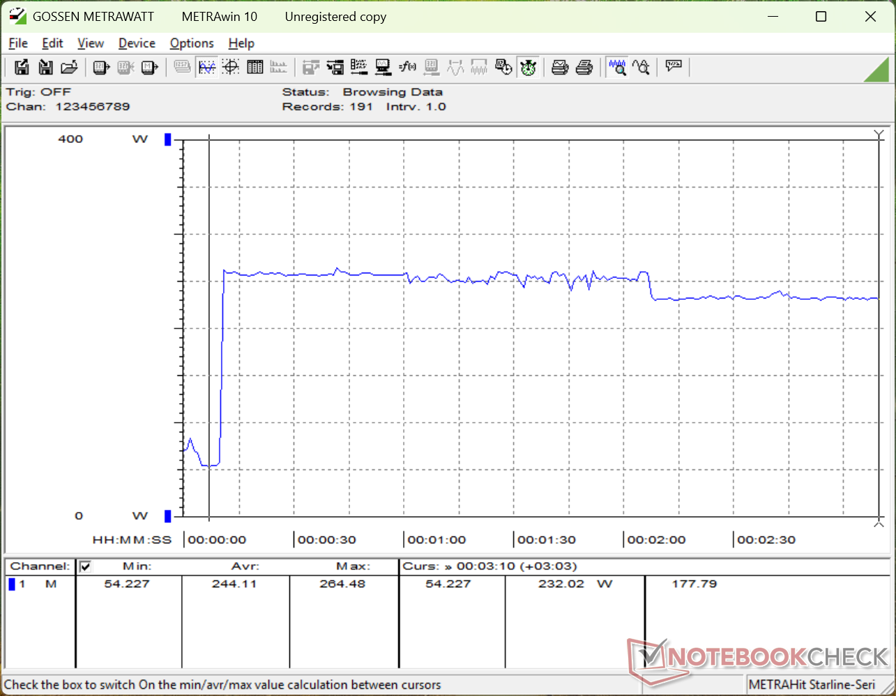 De Core Ultra 9 290HX Plus is 15 tot 25 procent sneller dan de voorgaande Core Ultra 9 275HX, zoals hierboven vermeld. Toevallig is onze 2026 Alienware 16 15 tot 25 procent veeleisender dan de 2025 Alienware 16 wanneer de CPU wordt belast. Het draaien van Prime95 op het nieuwste Alienware-model verbruikt ongeveer 255 W wanneer Turbo Boost het meest effectief is of 230 W wanneer Turbo Boost op een laag pitje staat, vergeleken met slechts 200 W op het model van vorig jaar. Zelfs als er niet gegamed wordt, is het nieuwere model over het algemeen minstens een paar watt veeleisender.