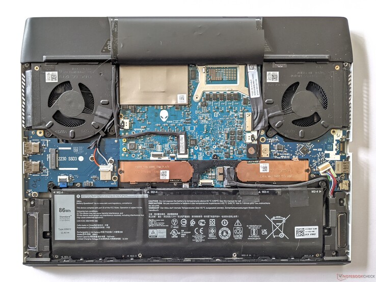 De batterijduur is echter extreem kort als gevolg van het hoge stroomverbruik van de CPU en GPU. Andere fabrikanten scoren hier beter, waardoor gebruikers geen ingewikkelde aanpassingen hoeven te doen aan de instellingen voor energiebeheer. Hoewel het ventilatorgeluid iets lager is in vergelijking met de Alienware m15 R3zijn de interne temperaturen nog steeds extreem hoog. Hoewel het koelsysteem deze nog steeds onder controle heeft, is het de vraag of dit op een warme zomerdag het geval zal blijven.