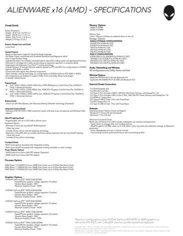 De Alienware x16 biedt verschillende AMD Ryzen 7000 opties, waaronder de Ryzen 5 7640HS, Ryzen 7 7840HSen de Ryzen 9 7940HS. GPU keuzes zijn vergelijkbaar met wat we hebben gezien met de Intel SKU's met maximaal een 175 WNvidia GeForce RTX 4090in tegenstelling tot Intel biedt Alienware echter het Element 31 thermisch interfacemateriaal alleen aan op configuraties met de RTX 4080 en RTX 4090. Deze vlaggenschip SKU's krijgen ook dampkamer koeling te gebruiken.