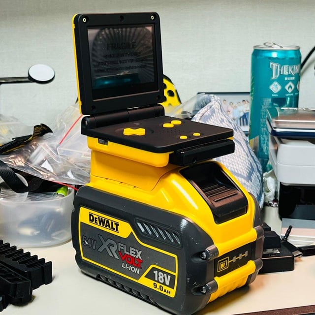 Een standaard Game Boy Advance SP(momenteel op Amazon geprijsd voor ongeveer 180 dollar) werkt ongeveer 10 uur op de originele batterij. Voor Reddit-gebruiker u/Bangooh was dat niet genoeg. In plaats van te kiezen voor de gebruikelijke lithium-ion upgrade, nam hij een meer onconventionele route: een DeWalt batterijpack van 162.000 mWh - ongeveer 45.000 mAh bij 3,6 volt. Dat is het soort krachtbron dat u normaal gesproken in een accuboormachine of zelfs een grasmaaier vindt.