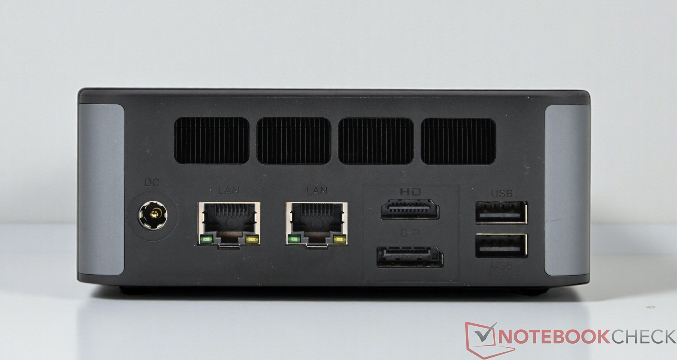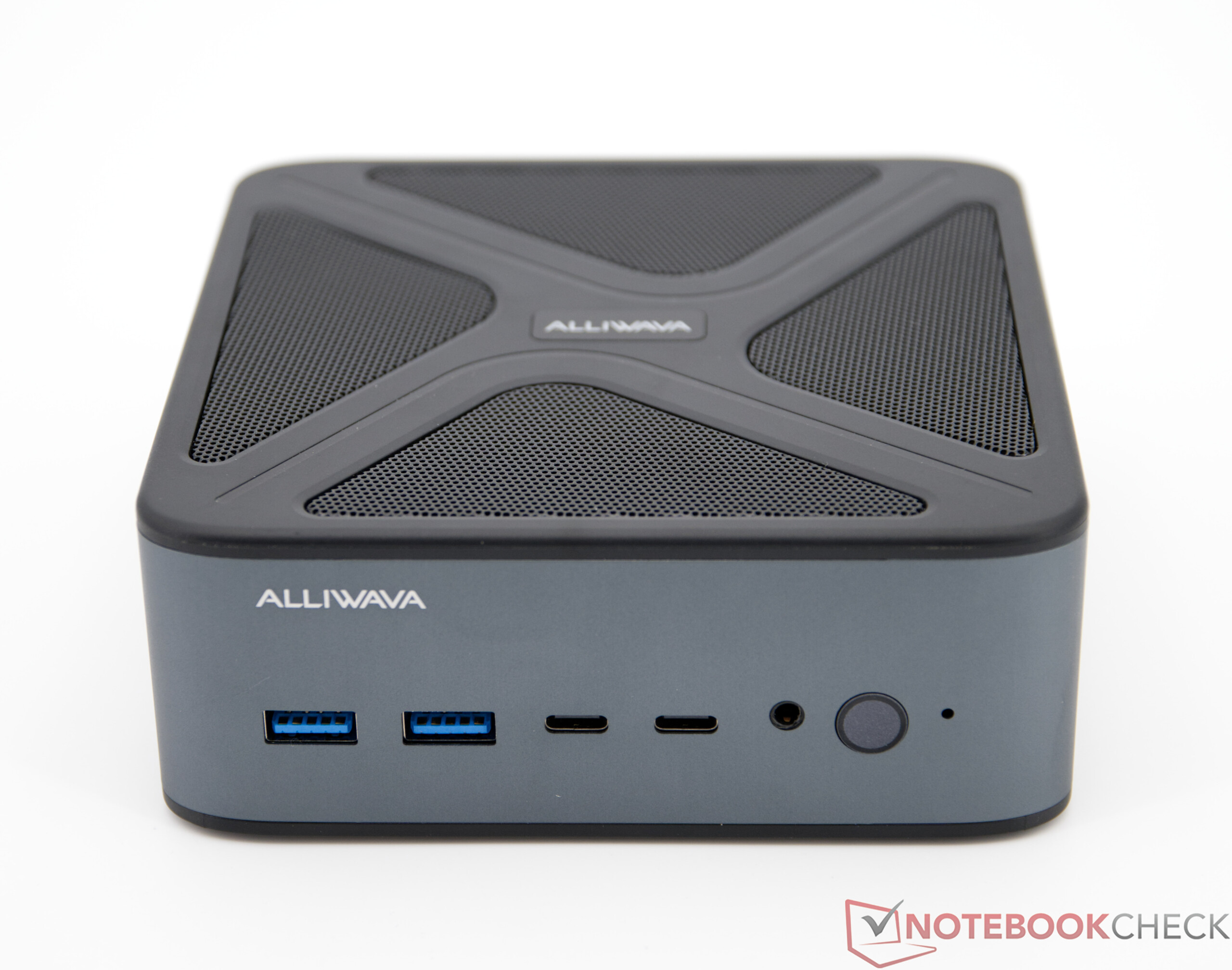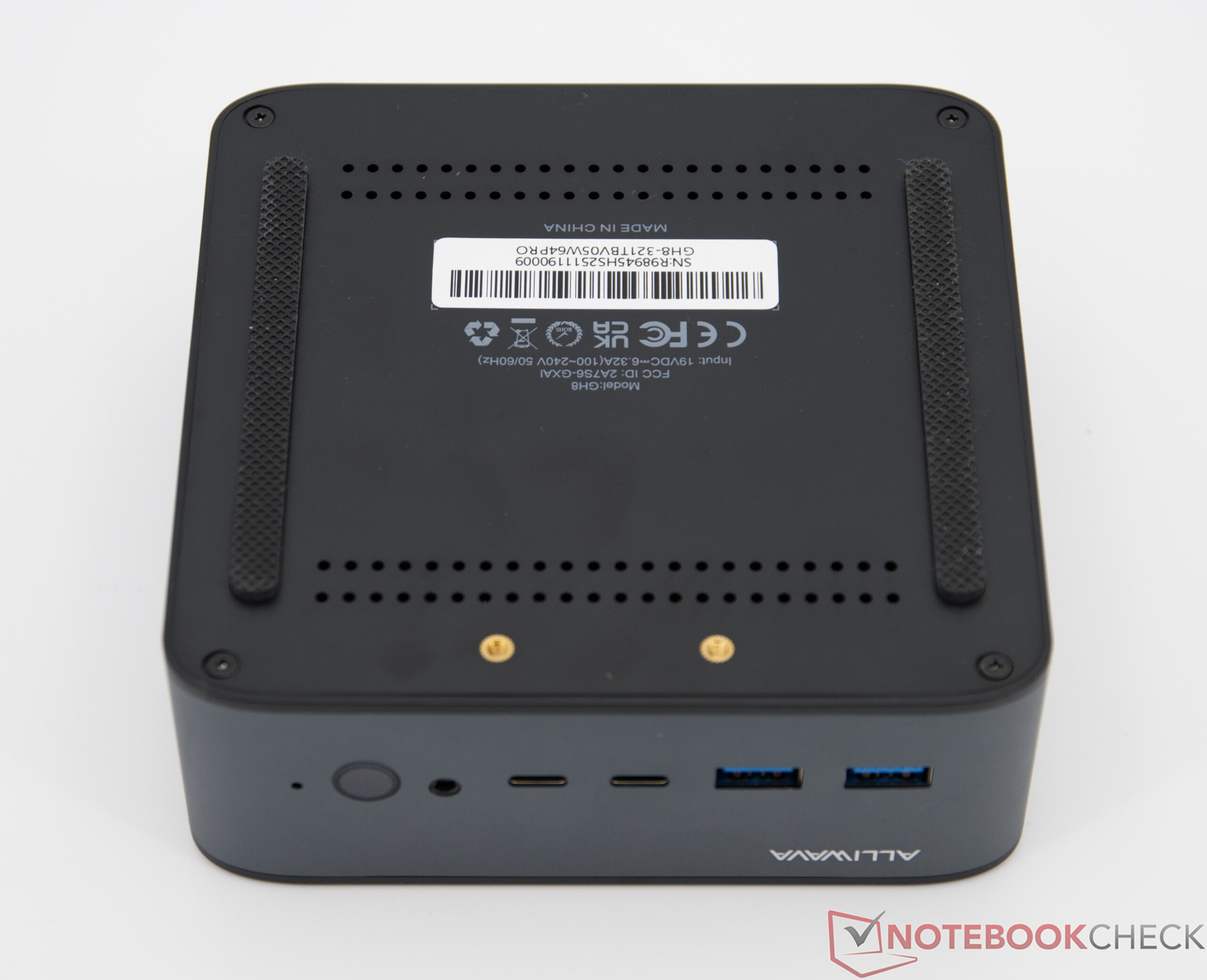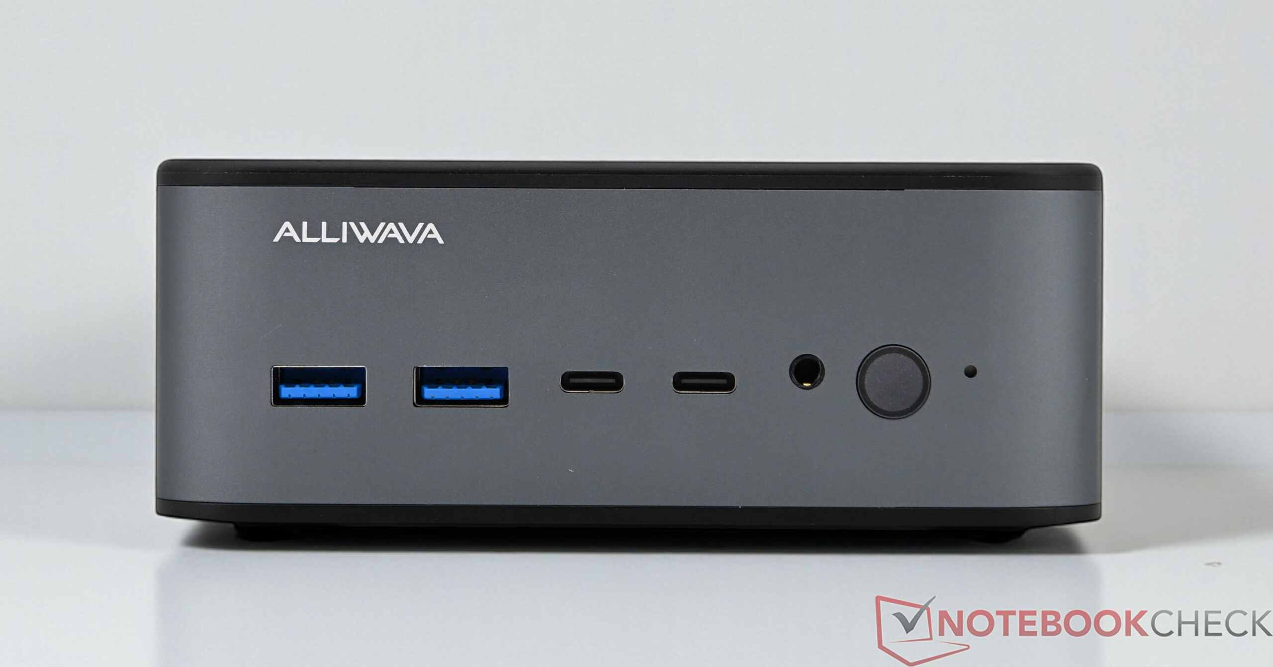 De Alliwava GH8 zit in een stevige aluminium behuizing en valt op door zijn compacte afmetingen en een gewicht van ongeveer 500 gram. Terwijl de behuizing van metaal is, zijn er plastic elementen gebruikt op het deksel en de onderkant, wat slechts een klein beetje afdoet aan de algehele hoge kwaliteit en robuuste indruk. De connectiviteit is praktisch verdeeld over de voor- en achterkant en dekt op betrouwbare wijze de typische kantoor- en thuisvereisten. De USB4 interface, die ook het gebruik van externe grafische kaarten ondersteunt, verdient een speciale vermelding. De solide basisuitrusting omvat ook twee 2,5 Gigabit Ethernetpoorten en WLAN, wat betekent dat de Alliwava GH8 ook op het gebied van connectiviteit goed gepositioneerd is.