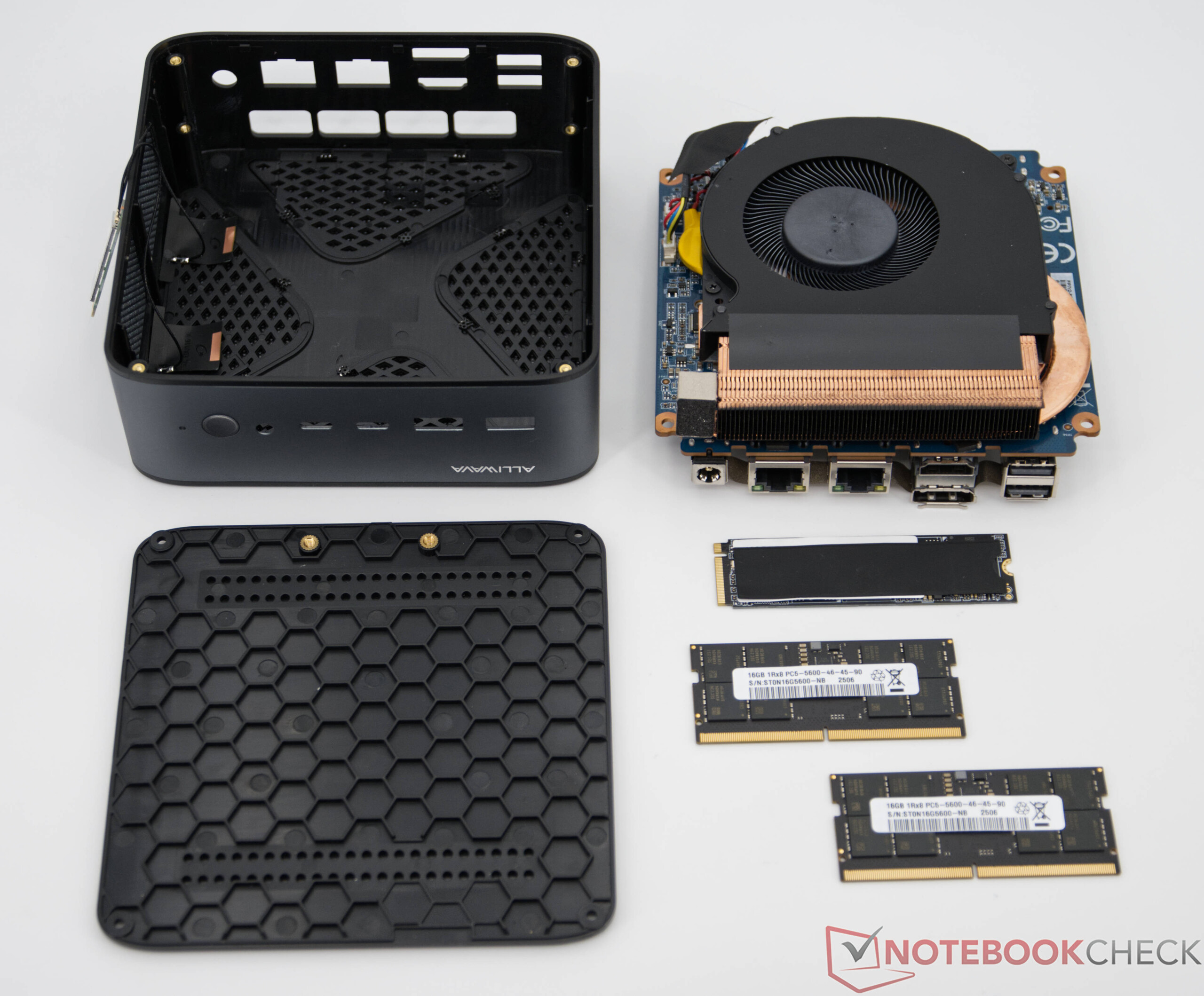 De Alliwava GH8 wordt vanuit de fabriek geleverd met geïnstalleerd RAM en een SSD en is dus direct klaar voor gebruik. De behuizing kan gemakkelijk worden geopend voor latere upgrades, waarbij RAM, massaopslag en de WLAN-module gemakkelijk toegankelijk en vervangbaar zijn.