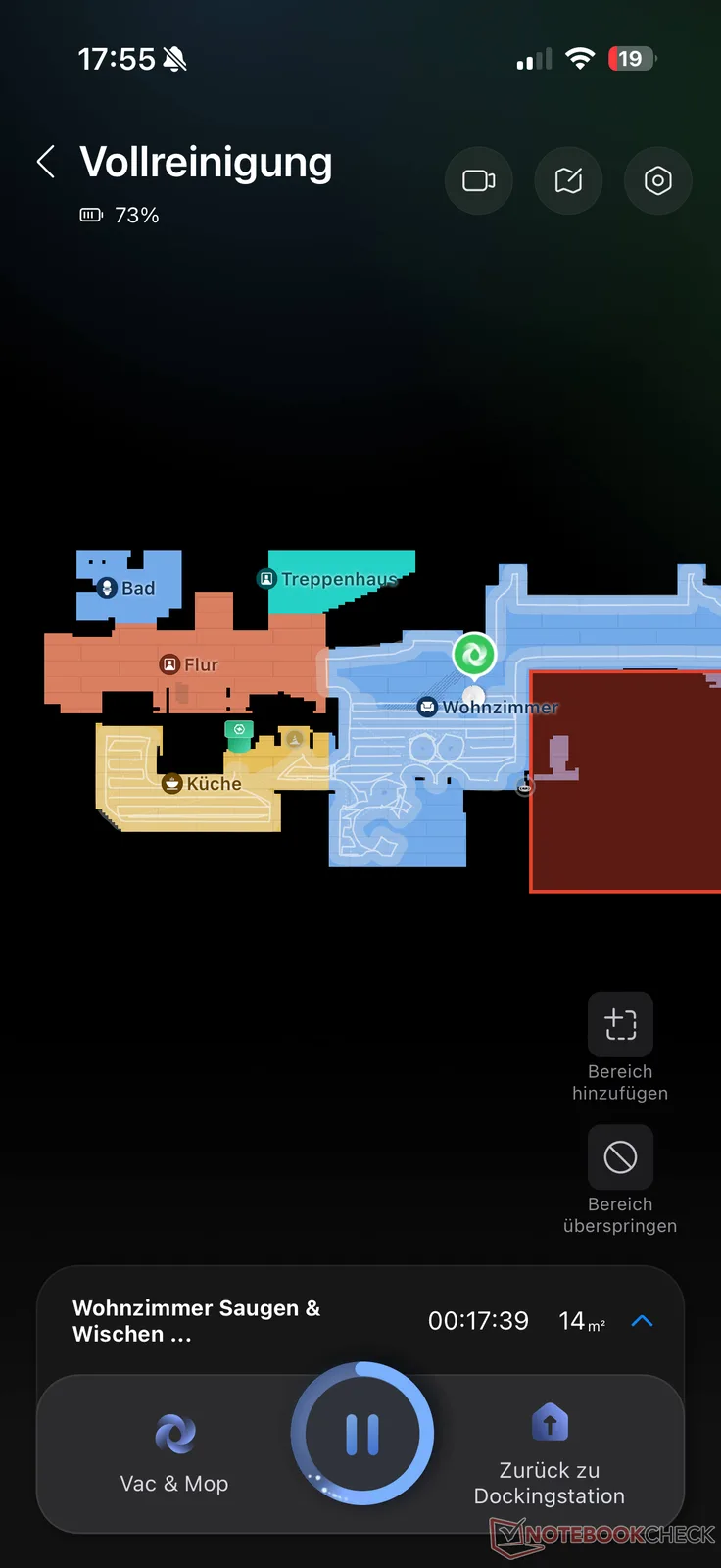 De installatie via de Roborock app verliep zonder problemen, zoals u van de fabrikant mag verwachten. De app leidt u in het Duits door de installatie. Zodra de verbinding tussen de app, de robot en het Wi-Fi-netwerk tot stand is gebracht, vindt de verplichte mapping-run plaats, waarbij de robot zijn omgeving verkent.
