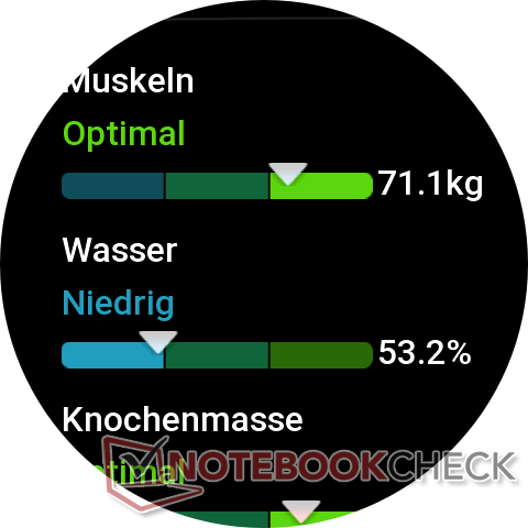 Onder "Bereidheid" geeft de smartwatch een overzicht van het veronderstelde energieniveau op basis van de gemeten gegevens met betrekking tot hartslag, SpO2, slaap en stress. Als waarden zoals fysiek of mentaal herstel niet in de groene zone liggen, geeft de Amazfit Balance een waarschuwing. De huidtemperatuur wordt ook gemeten. De wearable kan ook de VO2maxvoor verschillende soorten sport bepalen.