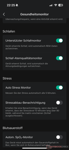 De wearable zelf biedt een overzicht van de slaapduur en de afzonderlijke slaapfasen. Een nog uitgebreidere slaapanalyse is beschikbaar in de app. Onder andere slaapduur, slaapregelmaat, hartslag tijdens de slaap, hypopneu en ademhalingsfrequentie worden geëvalueerd, zowel voor de afgelopen nacht als de afgelopen zeven dagen. Het horloge houdt ook korte dutjes bij.