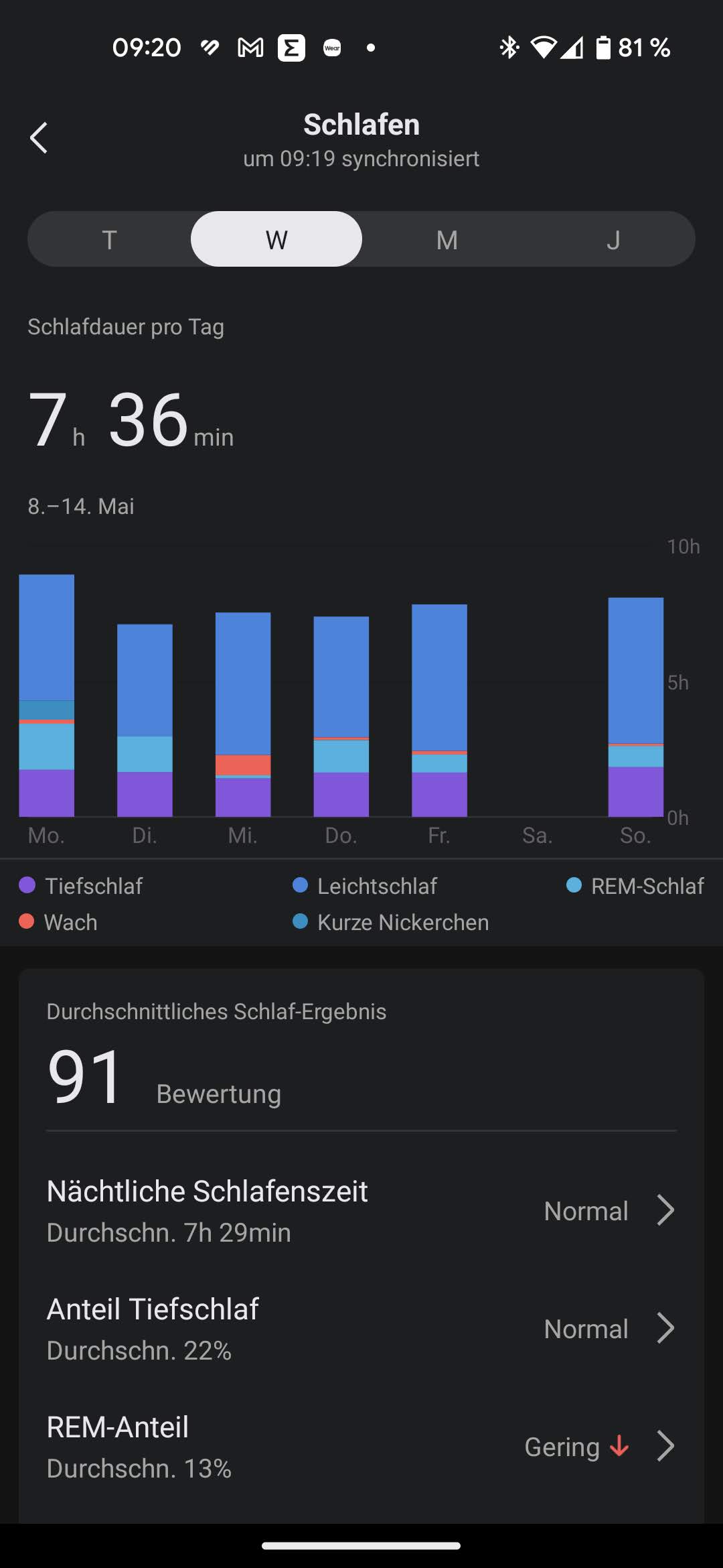 De Amazfit GTS 4's biedt uitgebreide slaaptracking. De smartwatch geeft een overzicht van verschillende slaapfasen: lichte, diepe en REM-slaap. Daarbij worden de tijdsperioden daarvan zowel grafisch als numeriek weergegeven. Het is mogelijk om de waarden voor enkele dagen, weken of maanden weer te geven. De actuele dagwaarden worden direct op de smartwatch weergegeven en kunnen desgewenst elke ochtend automatisch worden bijgewerkt. Toegang tot de details is alleen mogelijk door het openen van de Zepp app.