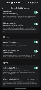 Amazfit adverteert de GTS 4 ook met een nieuwe "BioTracker 4.0" gezondheidssensor die lichaamsparameters kan registreren, 24 uur per dag. De meetfrequentie kan worden ingesteld in de Zepp-app. Om de gegevens beter te kunnen beoordelen, hebben we het vergeleken met een referentieapparaat.
