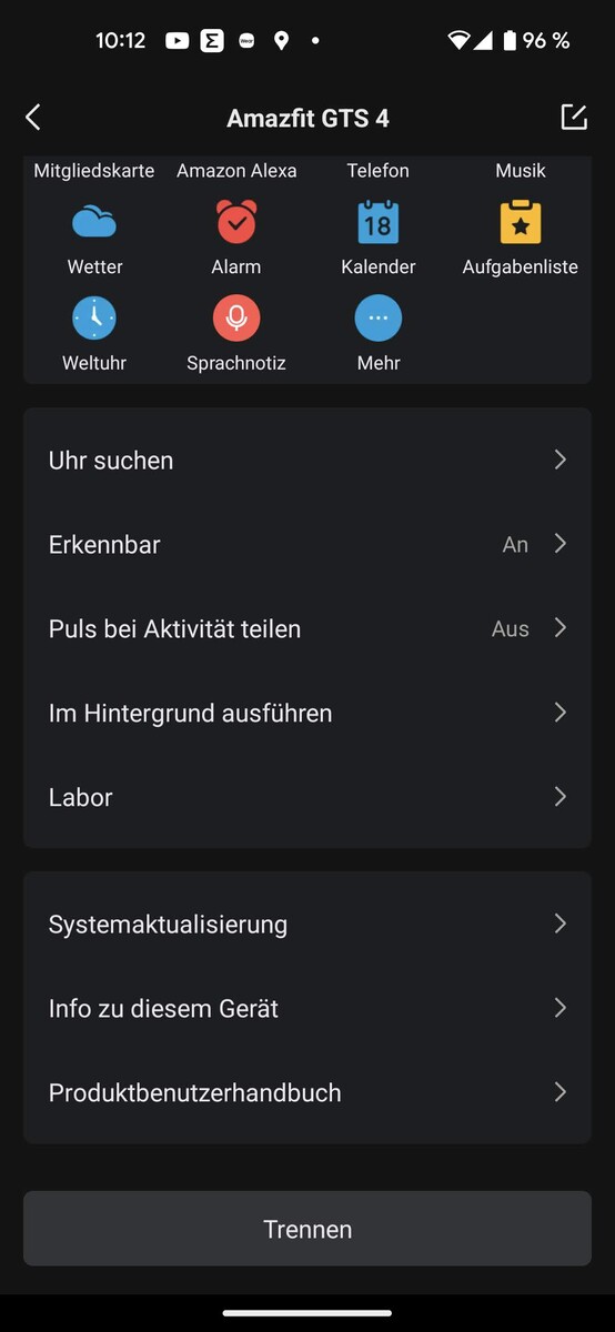 Op dit gebied maakte de software indruk op ons met zijn uitstekende betrouwbaarheid en snelle reactietijden. Een "stel de timer in op 5 minuten" wordt aanzienlijk sneller uitgesproken dan het openen van het app-menu en het scrollen naar de timer - een echt pluspunt. Bovendien zijn deze spraakopdrachten - in tegenstelling tot Alexa - ook mogelijk zonder het horloge te koppelen met een smartphone. De offline commando's kunnen in het Duits worden uitgevoerd, hoewel de voorbeeldpagina in de Zepp-app in het Engels is, en de Duitse commando's op het horloge zelf staan vermeld.