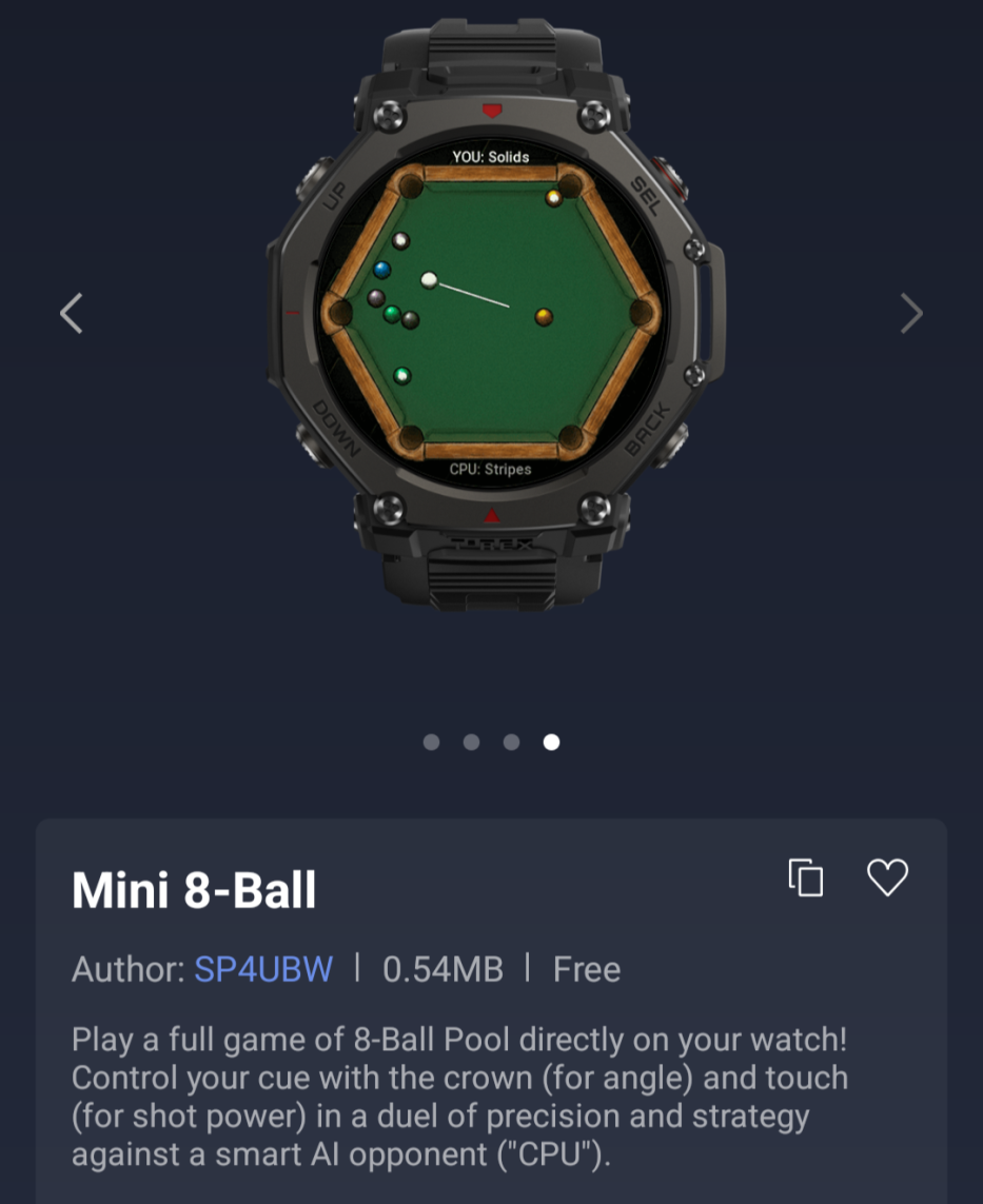 Er zijn ook twee nieuwe spellen voor gebruikers van Amazfit wearables. De eerste is Mini 8-Ball, waarbij u een spelletje 8-Ball pool kunt spelen tegen een AI-gegenereerde speler op uw horloge. De hoek van de poolkeu kan worden aangepast met de kroon van de smartwatch, en de kracht wordt geregeld met een touch-input. De tweede is Quick Math, een hersentrainingsapp waarbij gebruikers een score krijgen voor het oplossen van vergelijkingen in een vaste tijdspanne.
