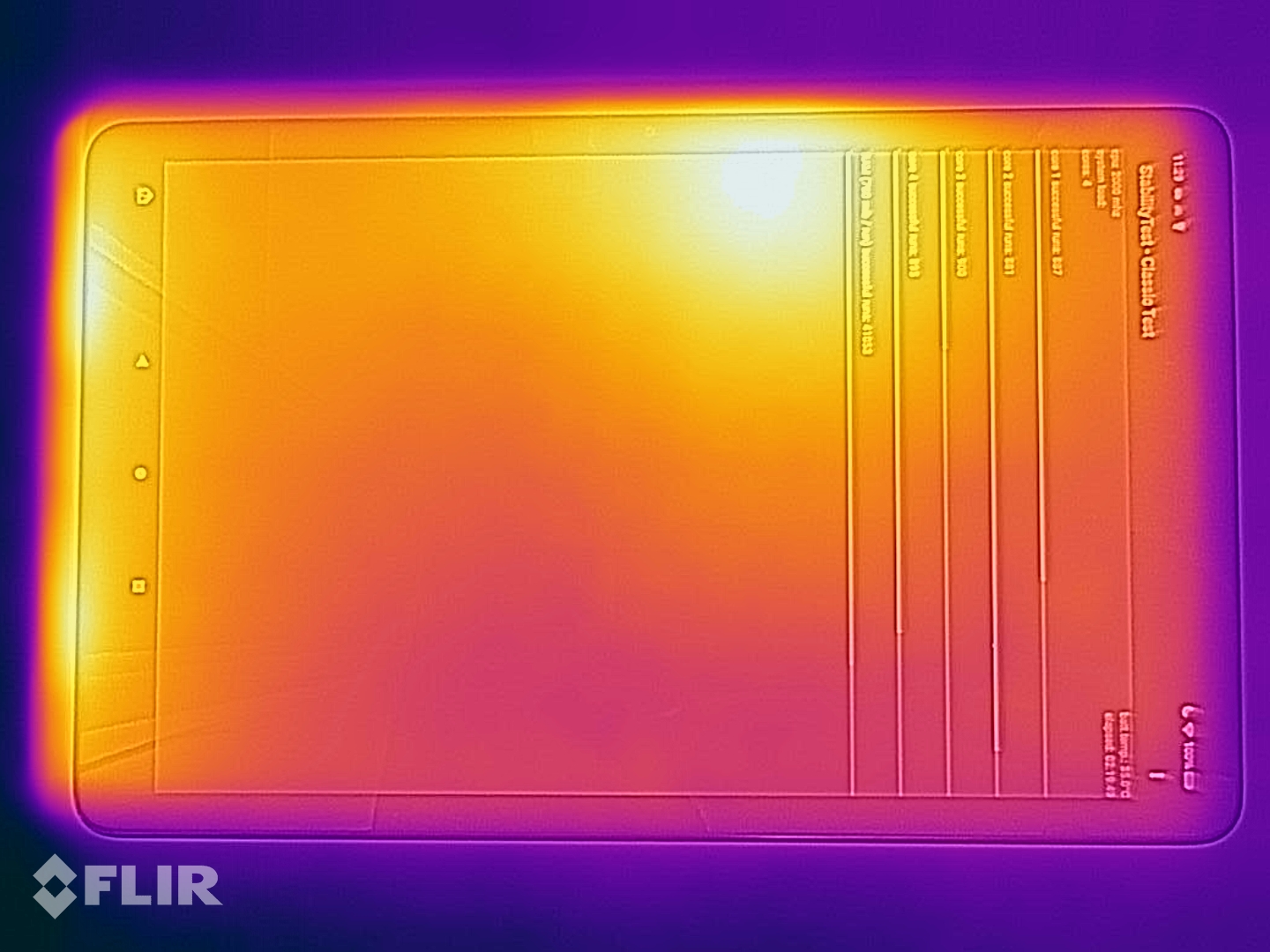 De Amazon Fire Max 11 heeft geen problemen met opwarmen. In onze tests blijft hij koel onder maximale belasting en wordt niet meer dan lauw aan de oppervlakte. Zoals de Wild Life stresstests van 3DMark laten zien, is de SoC bijna altijd in staat om volledige prestaties op te roepen. In de veeleisende Wild Life Extreme test wordt de testscène na 20 runs nog steeds vrijwel net zo snel gerenderd als in de eerste run (98,4%).