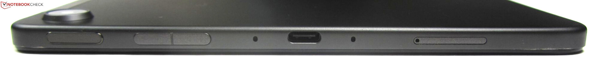 Aan de onderkant van de tablet zit een pogo pin strip om het magnetische docking toetsenbord aan te sluiten. In tegenstelling tot de Fire HD 10 Plus (2021) steekt de camera aan de achterzijde, die nu een resolutie heeft van 8 MP in plaats van 5 MP, een paar millimeter uit de behuizing. Als je de tablet niet in de optionele toetsenbordhoes plaatst, wiebelt hij heen en weer op vlakke oppervlakken.