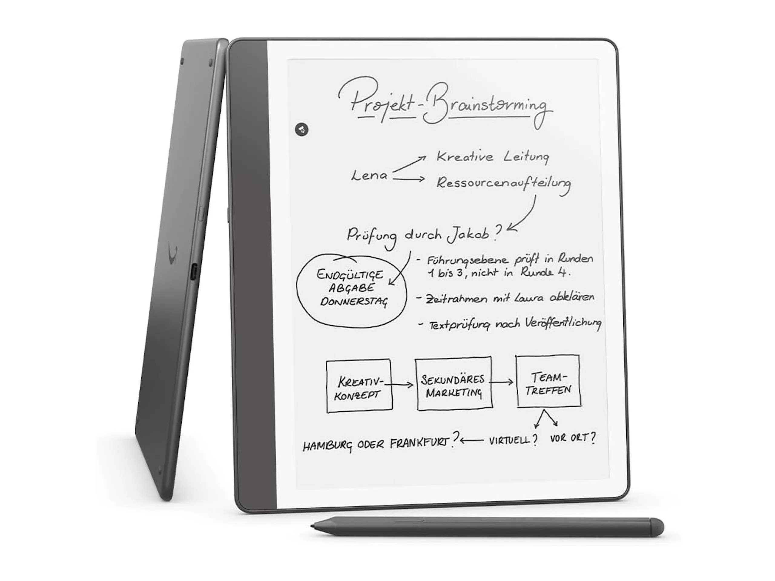 De volgende generatie van Amazons Kindle Scribe werd voor het eerst gelanceerd in 2022. Wat het apparaat onderscheidt van typische e-readers is dat het zowel een boek als een notitieblok is, aangezien de Scribe de grootste Kindle is met een stylus om aantekeningen te maken. De nieuwe Scribe wordt naar verwachting op 4 december verzonden en kost $ 399,99 voor de 16 GB variant, terwijl u voor de 32 GB en 64 GB varianten respectievelijk $ 419,99 en $ 449,99 betaalt. De aangeboden kleuren zijn Tungsten en Metallic Jade . Voordat u een keuze maakt, moet u er rekening mee houden dat bestandsformaten voor e-books erg compact zijn en weinig ruimte innemen, dus een grote opslagconfiguratie is niet in alle gevallen nodig. 32 GB kan bijvoorbeeld tot 24.000 e-boeken bevatten.
