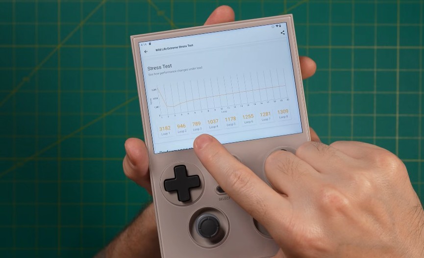 Russ merkte op dat de Anbernic RG477V een prestatieprobleem had dat ervoor zorgde dat het apparaat erg warm werd in de hoge prestatiemodus, waarbij het 105 °C bereikte. Het apparaat slaagde ook niet voor de Wild Life Extreme Stress test, waarbij het na de eerste lus aanzienlijk daalde. Na Anbernic hiervan op de hoogte te hebben gesteld, brachten ze echter een OTA uit voor het apparaat waarmee het probleem (in de prestatiemodus) verholpen werd. Er wordt gezegd dat de prestaties van de RG477V dicht in de buurt komen van die van de Ayaneo Pocket DMG, die bijna het dubbele kost.