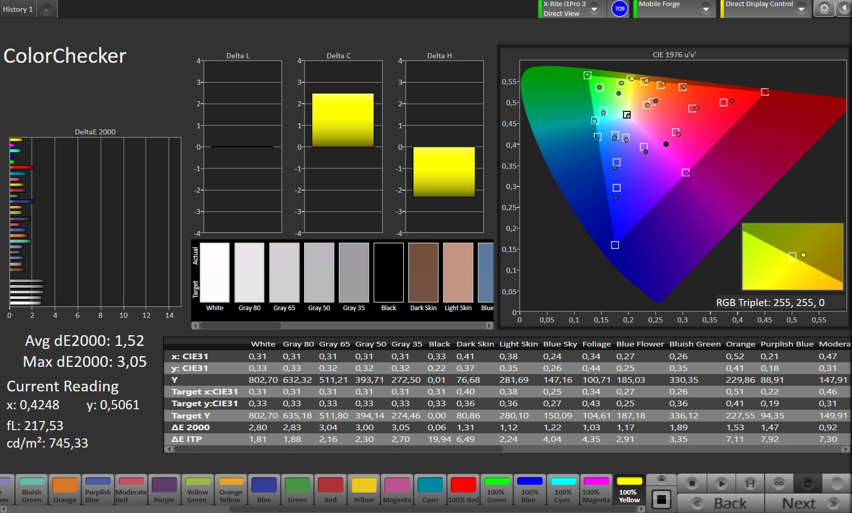 ΔE ColorChecker Calman: 1.52 | ∀{0.5-29.43 Ø4.77}