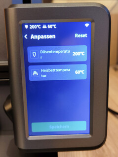 Wij vinden de keuze van Hotend voor de maximumtemperatuur ongunstig, omdat deze is uitgerust met een PTFE-buis voor de filamenttoevoer, die doorloopt tot in de verwarmingszone. Wij vinden een maximaal instelbare temperatuur van 260 °C te hoog voor de hotend. De firmware staat zelfs een korte tijd tot 275 °C toe, voordat een temperatuurfout de 3D-printer in een veiligheidsuitschakeling dwingt. PTFE, beter bekend onder de merknaam Teflon, begint bij 260 °C giftige dampen af te geven. Aangezien de hotend temperatuur altijd een paar graden kan schommelen, wordt dit punt waarschijnlijk overschreden bij het printen op de maximale temperatuurinstelling.
