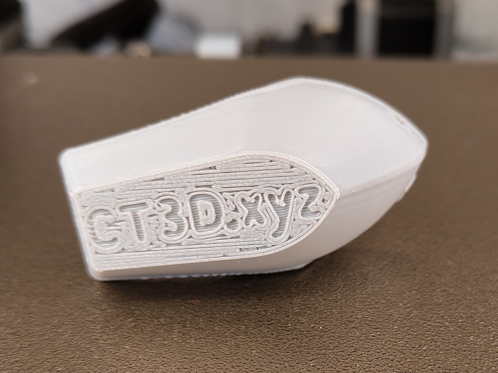 Weinig stringing, goede overhangen tot 70°, lage fabricagetoleranties en vooral een herhaalbaar goed printbeeld zijn te zien in het resultaat. De twee delen, die na het printen verplaatst zouden moeten kunnen worden, lieten hier extreem gemakkelijk los van de rest van het object. Ook hier liggen de problemen van de 3D-printer duidelijk niet bij de extruder. De waarden voor acceleratie en jerk zijn waarschijnlijk te hoog ingesteld door de fabrikant. Dit is vooral te zien aan de randen. Enerzijds zien we op verschillende plaatsen zogenaamde ghosting door trillingen die optreden na richtingsveranderingen. De overdreven versnelling wordt echter duidelijker aan de randen. Daar schiet de printkop bijna altijd door. Daardoor ontstaan uitstulpingen. Op deze punten worden de fabricagetoleranties van FDM printen duidelijk overschreden.