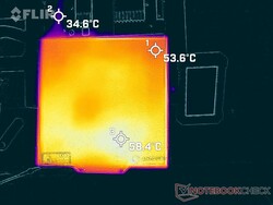 Het printbed is aan de onderkant niet geïsoleerd. Dit kan met weinig moeite achteraf worden aangebracht; zonder isolatie verbruikt de 3D printer meer stroom en vertoont het printbed meer temperatuurverschillen. Het warmtebeeld toont temperaturen tussen 53,6 °C en 58,4 °C bij een doeltemperatuur van 60 °C op het testapparaat. Bij een kamertemperatuur van 22,6 °C warmt de kabelboom naar het printbed op tot 34,6 °C. De geringe opwarming is het bewijs van een goed gekozen kabeldoorsnede naar het printbed. De kabel moet tot 400 watt overbrengen. De bedrijfstemperatuur van 60 °C voor het printen van PLA wordt zo binnen ongeveer 100 seconden bereikt. Maximaal kan het printbed worden opgewarmd tot 110 °C. Dit duurt meer dan 5 minuten.