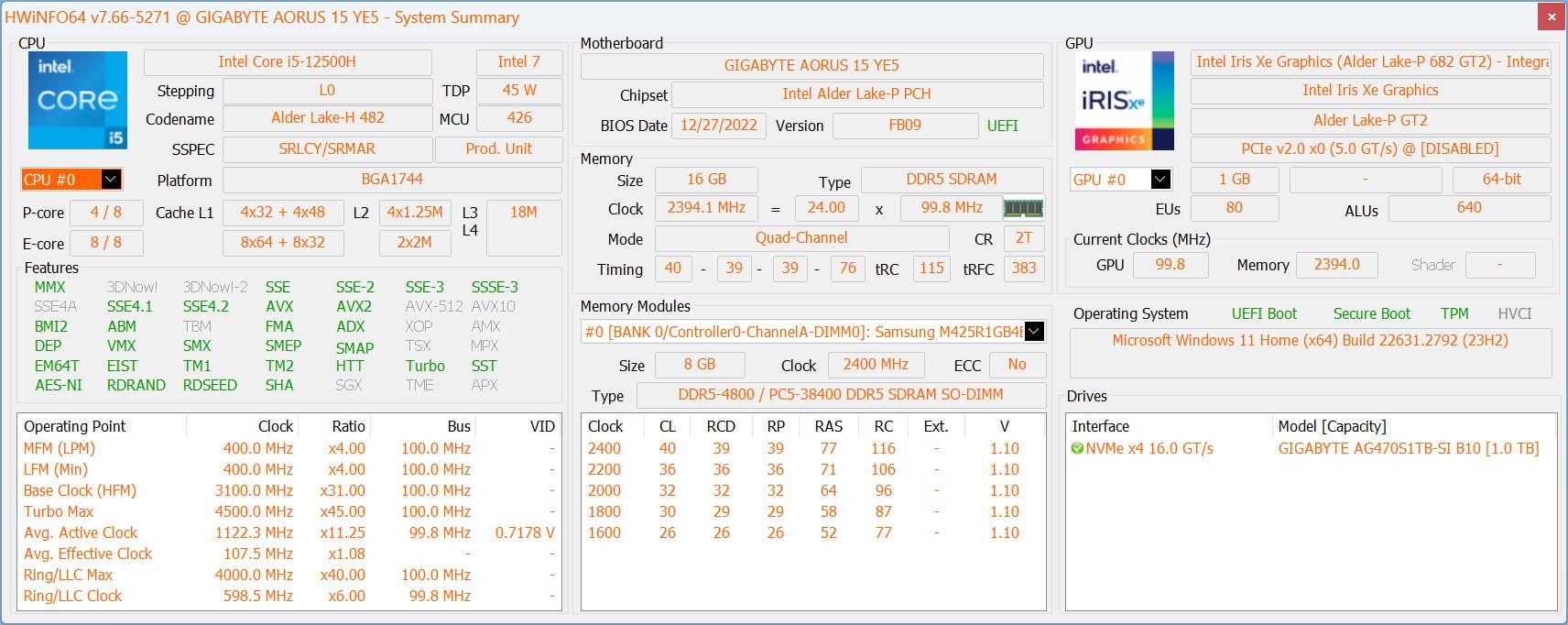 | 86.6 % v7 (old) | 12-2023 | Aorus 15 YE5-54DEB34SH i5-12500H, GeForce RTX 3080 Ti Laptop GPU | 2.3 kg | 27 mm | 15.60" | 2560x1440 | |