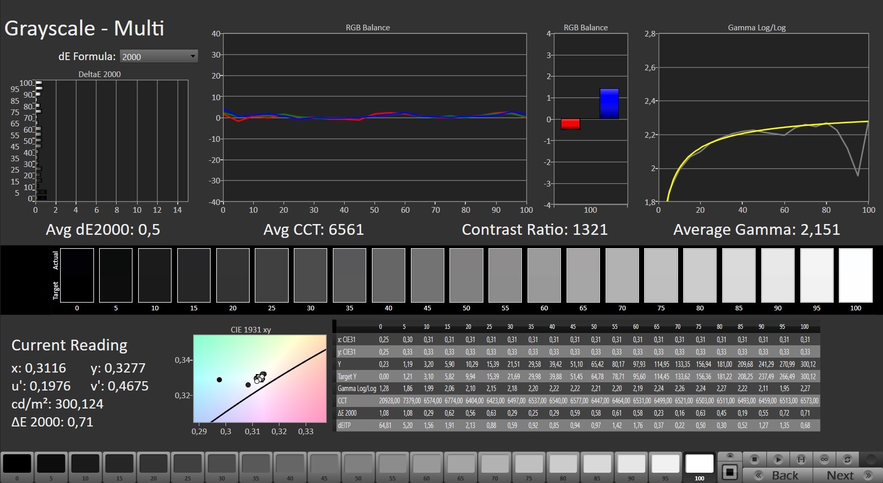 | Greyscale dE 2000 * | 3 | 1.7 43% | 2.7 10% | 4 -33% |