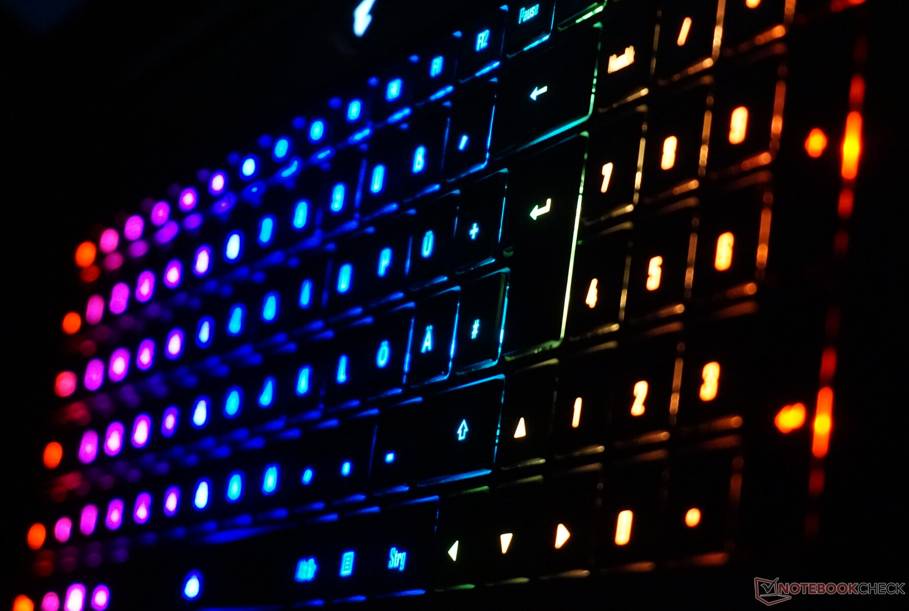 Het degelijke toetsenbord biedt geen grote slag maar wel een comfortabele weerstand. Het frame buigt nauwelijks door. Met de vrij configureerbare RGB verlichting, een grote selectie functietoetsen en het full-size cijferblok zijn er in ieder geval geen redenen tot klagen. We moeten echter voorzichtig zijn, want het toetsenbord is minimaal kleiner dan de standaard, wat bij het typen enige irritatie kan veroorzaken.