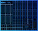 De 14-core Apple M4 Pro is een krachtige ARM-architectuurprocessor (SoC) voor laptops en mini-pc's die in september 2024 zijn debuut maakte. Hij beschikt over 10 krachtige CPU-kernen die draaien op maximaal 4,5 GHz, samen met 4 efficiënte kernen die draaien op maximaal 2,6 GHz. De 20-core M4 GPU en ten minste 24 GB snel 273 GB/s LPDDR5x on-package geheugen, afhankelijk van de configuratie, zijn ook inbegrepen, net als ondersteuning voor USB 4 en Thunderbolt 5.