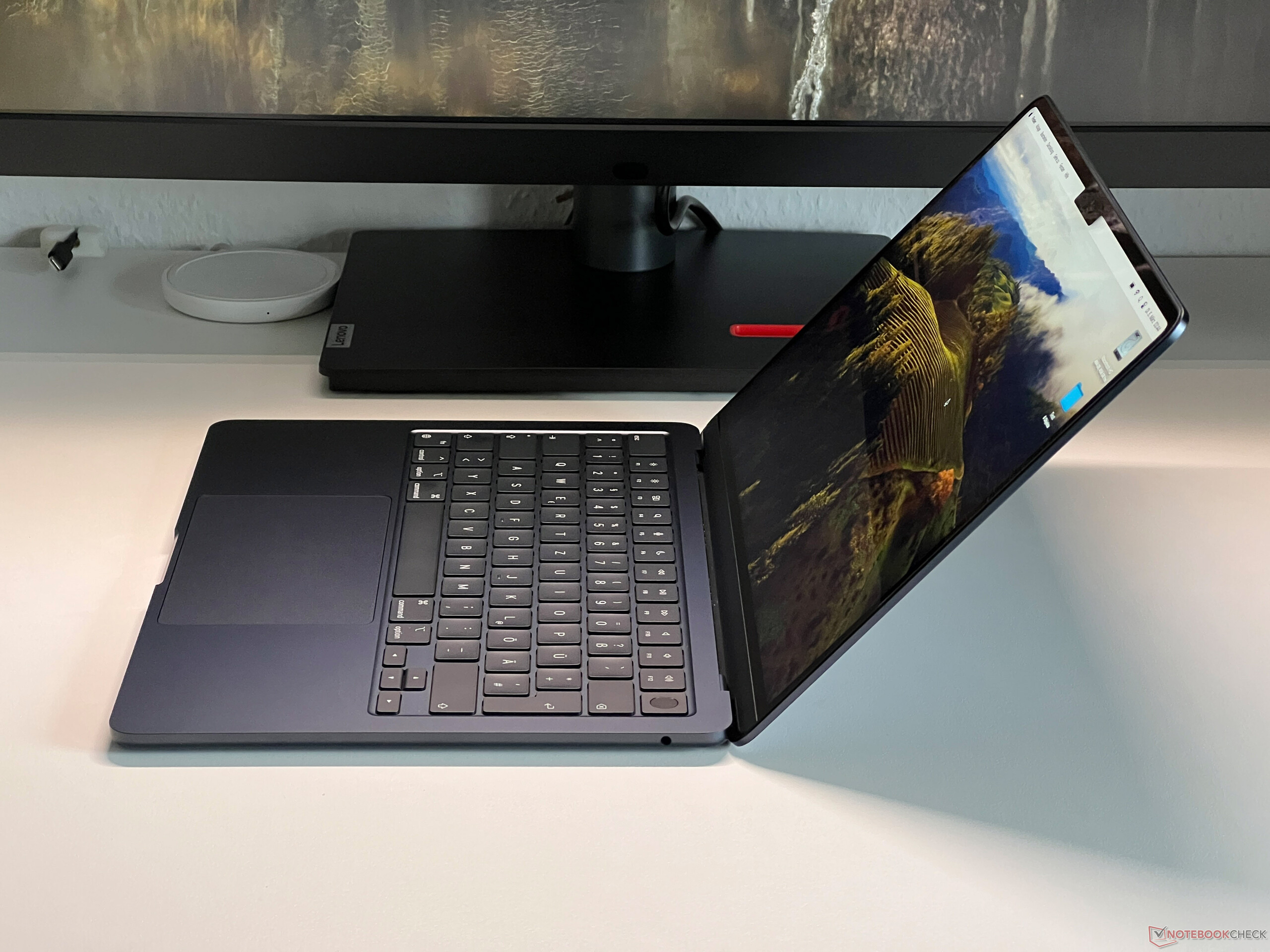 Met een dikte van 11,3 mm is de MacBook Air 13 nog steeds erg slank, maar hij neemt aanzienlijk meer ruimte in beslag dan bijvoorbeeld de Dell XPS 13 of de ThinkPad Z13, en is bijna net zo groot als 14-inch apparaten zoals de Zenbook 14 OLED. Hij weegt 1,237 kg en de 35 watt voeding (met 2x USB-C) weegt 184 gram inclusief de MagSafe kabel.