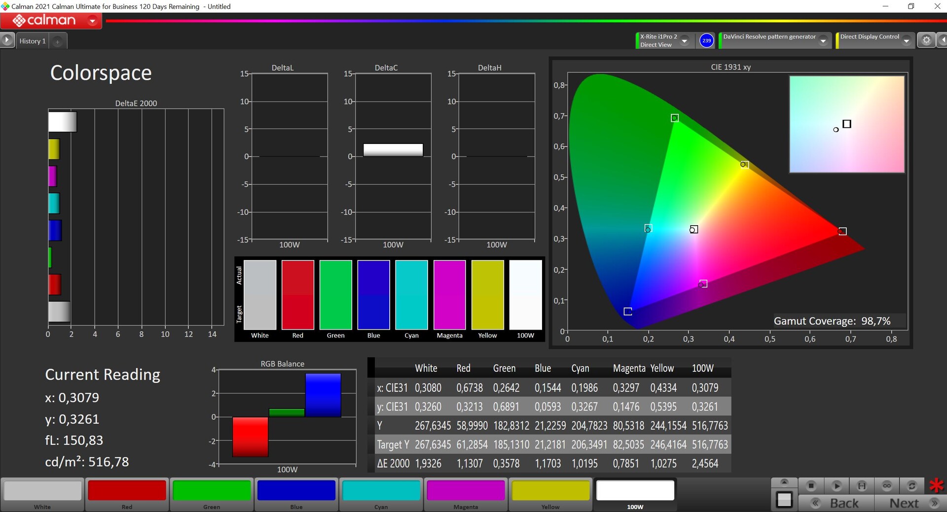 98.7% Display P3 (Argyll 3D)