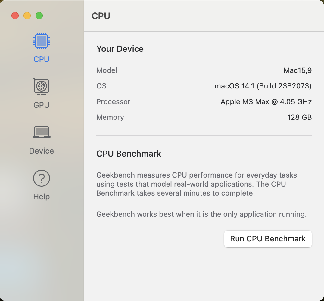 Apple M3 Max 14-core CPU (10P & 4E) |
