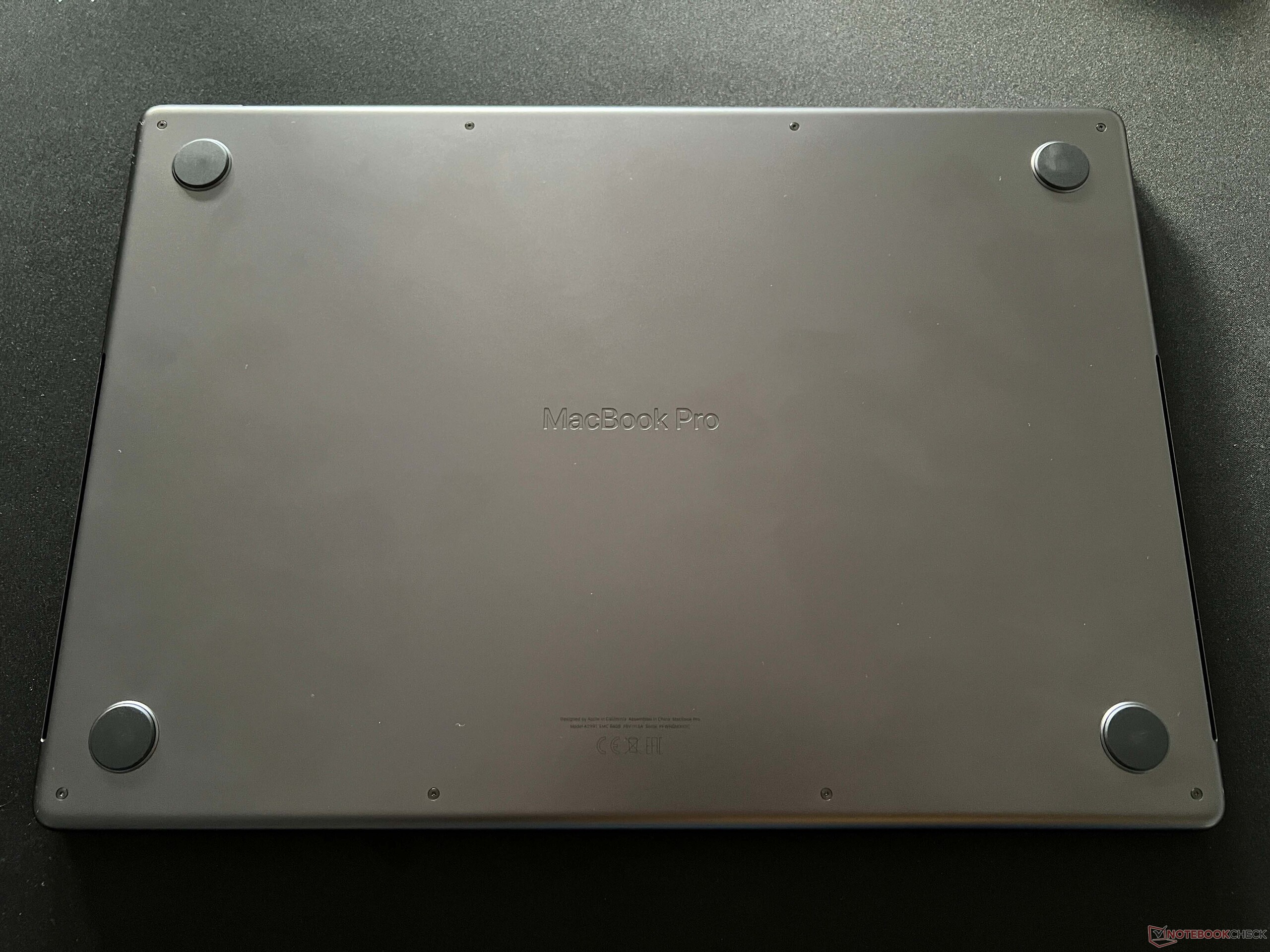 De kwaliteit van het chassis is nog steeds uitstekend en het aluminium chassis voelt gewoon premium en zeer stabiel aan. De schermscharnieren laten ook een goede indruk achter, alleen de maximale openingshoek (135 graden) zou groter kunnen zijn. De harde voorkant van de basiseenheid kan een probleem vormen en in de pols snijden wanneer u het toetsenbord langere tijd gebruikt. Net als bij de kleinere MacBook Pro 14 loopt de basiseenheid aan geen enkele kant taps toe, maar door de grotere voetafdruk voelt de grotere MBP 16 niet zo volumineus aan.
