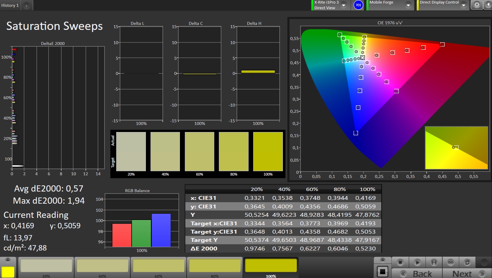 (±) | lineariteit van de middentonen is gemiddeld (7.3% delta ten opzichte van de vorige frequentie)