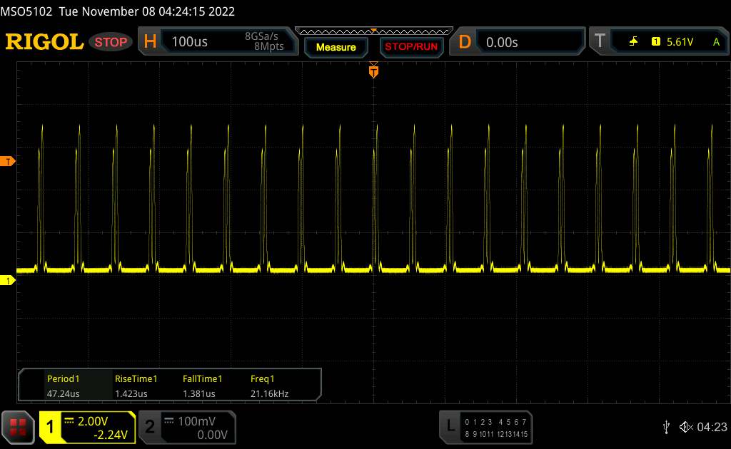 Onder de oscilloscoop namen we een constante hoogfrequente flikkering waar. Wie erg gevoelig is voor pulsbreedtemodulatie kan bij langer gebruik gaan klagen. Anders zou het geen probleem moeten zijn, maar het maakte het ons wel moeilijk om de reactietijden te meten. Deze bleken vrij hoog te zijn, en OLED's hebben op dit gebied nog steeds een duidelijk voordeel. Aan de andere kant is er, zoals slow-motion observatie door een microscoop laat zien, geen sprake van temporele dithering.