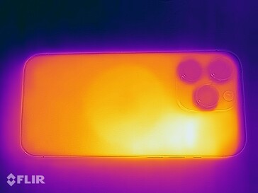 De oppervlaktetemperaturen van de Apple iPhone 14 Pro zijn zeer laag tijdens inactiviteit en schampen nauwelijks de 29-graden grens. Hoewel dit niet verrassend verandert onder belasting, wordt het apparaat slechts lauw om aan te raken.