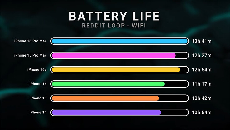 In een testsegment waarin Dave Lee bijvoorbeeld de gebruiksduur van de batterij vergeleek via een Reddit-loop op WiFi, hield de iPhone 16e het 12 uur en 54 minuten uit. De iPhone 16 ging daarentegen 11 uur en 17 minuten mee. Dat is meer dan een uur voorsprong voor het nieuwste toestel. Deze vergelijking had geen betrekking op de 16 Pro, maar de 16 Pro Max met een 4.685 mAh batterij ging 13 uur en 41 minuten mee.
