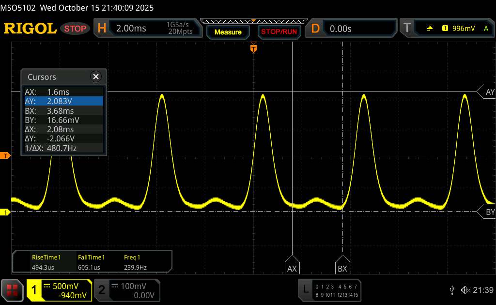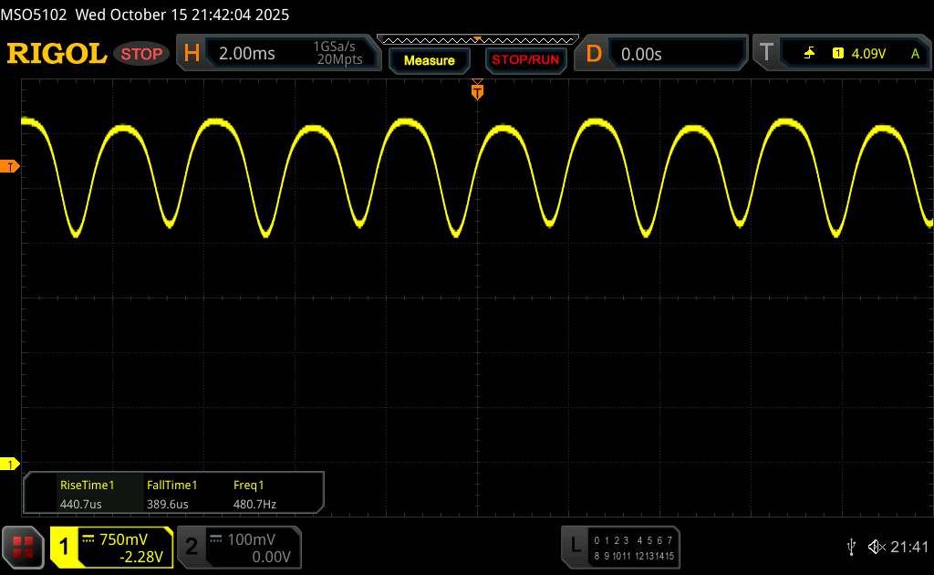 (+) | de hoge tonen zijn lineair (4.1% delta naar de vorige frequentie)