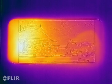 (+) Bij onbelast gebruik bedraagt de gemiddelde temperatuur voor de bovenzijde 27.6 °C / 82 F, vergeleken met het apparaatgemiddelde van 32.9 °C / 91 F.