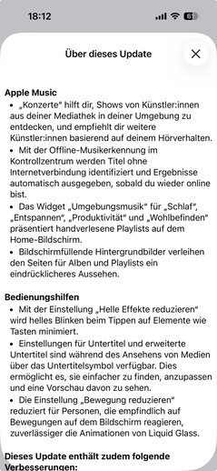 De update brengt een aantal nieuwe functies met zich mee, waaronder de mogelijkheid om muziek te herkennen via de Shazam-knop in de snelle instellingen, zelfs als de iPhone niet met het internet verbonden is, waarbij de resultaten pas weergegeven kunnen worden als de iPhone weer met het internet verbonden is. Een nieuwe widget genaamd "Ambient Music" geeft direct toegang tot zelfgekozen afspeellijsten die geoptimaliseerd zijn om in slaap te vallen, te werken of te ontspannen.
