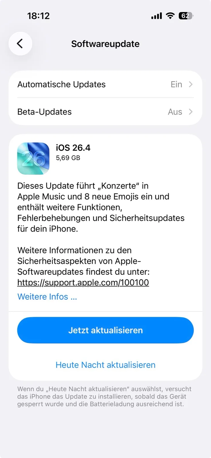 Apple heeft zojuist iOS 26.4 uitgebracht. De update van het besturingssysteem is beschikbaar voor alle modellen van de iPhone 11 tot de iPhone 17($799 bij Amazon) en voor de tweede generatie iPhone SE. De update kan zoals gewoonlijk gedownload en geïnstalleerd worden via de systeeminstellingen onder Algemeen --> Software-update.
