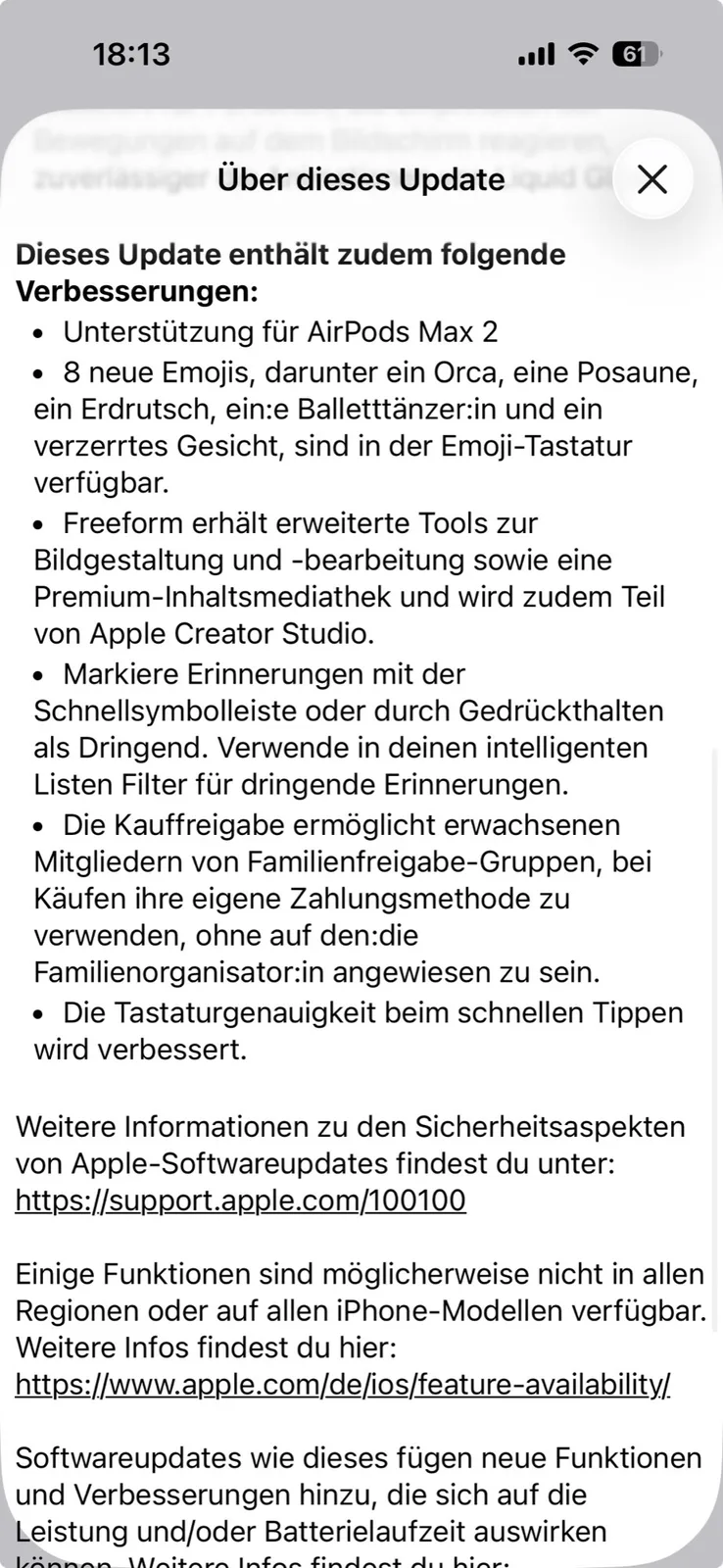 De Muziek-app krijgt schermvullende achtergronden voor albums en afspeellijsten en een functie "Concerten" die liveoptredens van uw favoriete artiesten in de buurt kan weergeven. Met nieuwe toegankelijkheidsopties kunt u animaties van Liquid Glass en heldere elementen op het scherm verminderen. Apple introduceert ook ondersteuning voor de nieuwe AirPods Max 2 en acht nieuwe emoji. Apple de Freeform-app krijgt premium content waarvoor Apple's Creator Studio abonnement nodig is. Bijzonder spannend voor veel gebruikers: de update verhelpt een bekende bug die er vaak voor zorgde dat het toetsenbord invoer niet correct herkende wanneer er bijzonder snel werd getypt