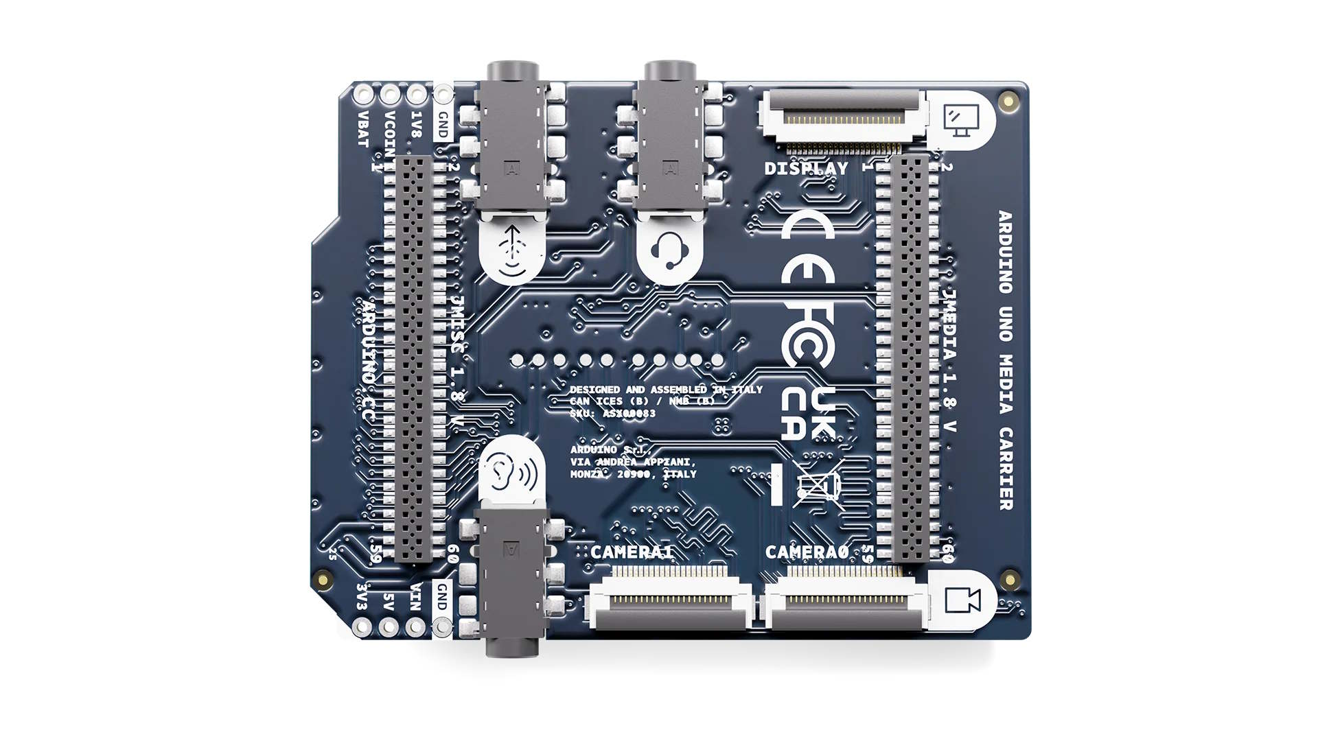 Er zijn ook audio-aansluitingen voor headsets of koptelefoons, samen met line-out voor het aansluiten van luidsprekers. Dit is een gecombineerde 3,5 mm audio-aansluiting die zowel een hoofdtelefoonuitgang als een microfooningang biedt. Daarnaast is er telkens één aansluiting voor een luidspreker en een hoofdtelefoon. Arduino geeft de UNO Media Carrier al op voor $19,25en zal naar verwachting binnenkort op de markt komen. Arduino heeft echter nog geen specifieke details over de verkrijgbaarheid gegeven.