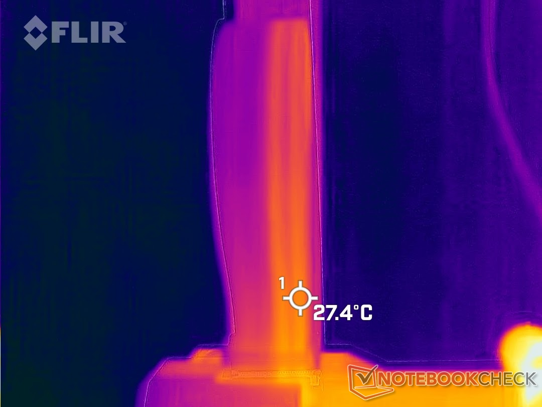 Alle kabels op de Artillery Genius Pro zien er netjes uit. Vooral door de gebruikte platte lintkabels is de kans op fouten door kabelbreuk zo goed als nihil. Hoewel men zou kunnen vermoeden dat de dunne lintkabels niet opgewassen zijn tegen de belasting van 40 tot 70 Watt voor de hotend en de motoren, geeft het warmtebeeld geen reden tot bezorgdheid. Met een maximum van 28 °C (82,4 °F), worden deze kabels niet bijzonder warm.