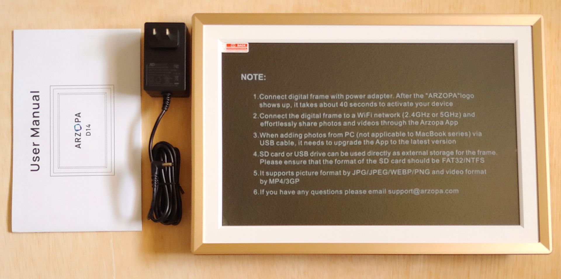De Arzopa werd geleverd met een wisselstroomadapter en een gebruikershandleiding.