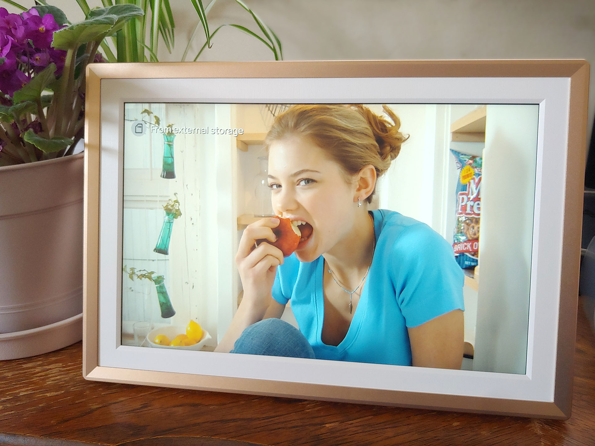 Dankzij de SD-kaartsleuf en de USB-poort konden foto's en video's meteen vanaf een camerakaart worden afgespeeld, zonder dat ze eerst geüpload moesten worden. Afbeeldingen kunnen worden ingezoomd om het hele beeld of het frame te vullen. De mogelijkheid om mappen te maken was erg handig bij het organiseren van foto's, zodat gebruikers geselecteerde foto's van evenementen konden bekijken.