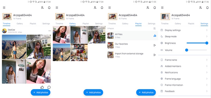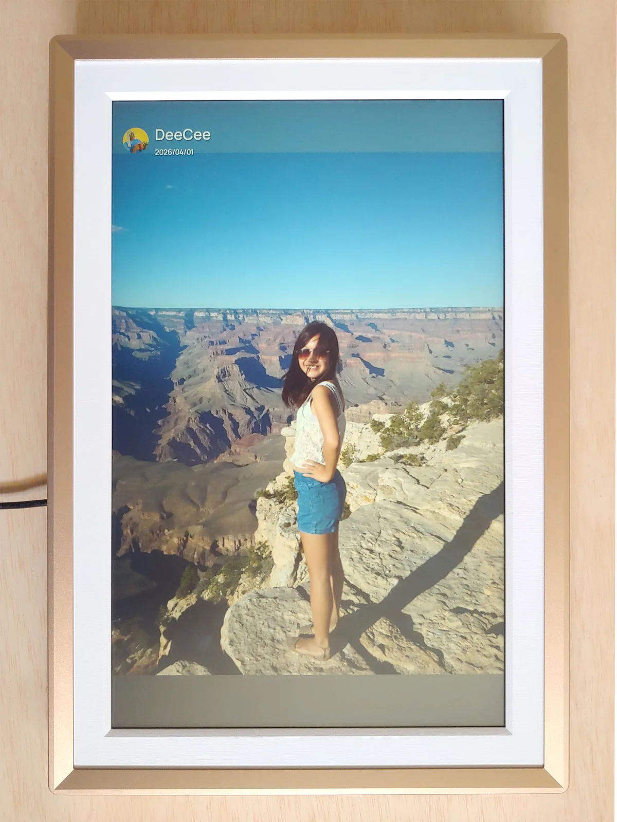 De Arzopa D14 digitale fotolijst geeft een eindeloze stroom foto's weer die zijn opgeslagen in de cloud, en nieuwe foto's kunnen op afstand worden toegevoegd door vrienden en familie.
