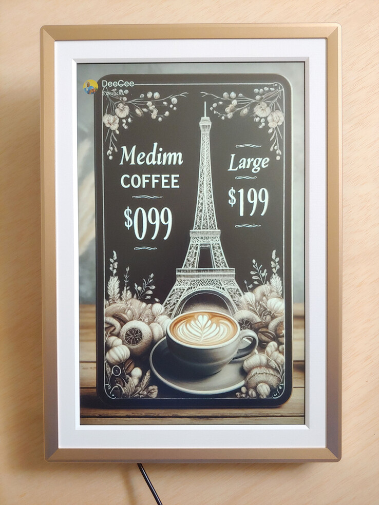 Desondanks is het een gemakkelijke, kostenbesparende manier om van foto's te genieten zonder ze af te drukken. Frames kunnen vooraf geladen worden met zegeningen en afbeeldingen om cadeau te geven, en bedrijven kunnen ze opnieuw gebruiken voor caféborden of menukaarten.