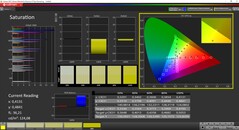 Onze analyse (CalMAN & X-Rite i1 Pro 2) laat een zichtbare blauwzweem zien in combinatie met een te koele kleurtemperatuur in de afleverstaat. We krijgen de kleurzweem onder controle met onze kalibratie, maar de helderheid daalt tegelijkertijd een beetje verder naar 225 cd/m². De kleurweergave verbetert ook een beetje, maar de afwijkingen zijn nog steeds te hoog voor serieuze beeldbewerking, omdat de dekking van de kleurruimte ook te laag is (sRGB slechts 63%). Het gekalibreerde ICC-bestand vindt u in het rechter bovenvenster naast de grafische weergave van de schermverlichting.
